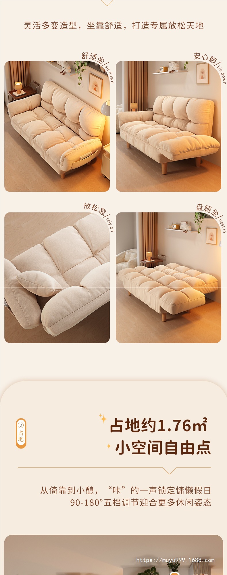 게으른 소파 작은 아파트 거짓말 슬리퍼 접이식 소파 침대 침실 더블 작은 소파 렌탈 룸 백레스트 시트