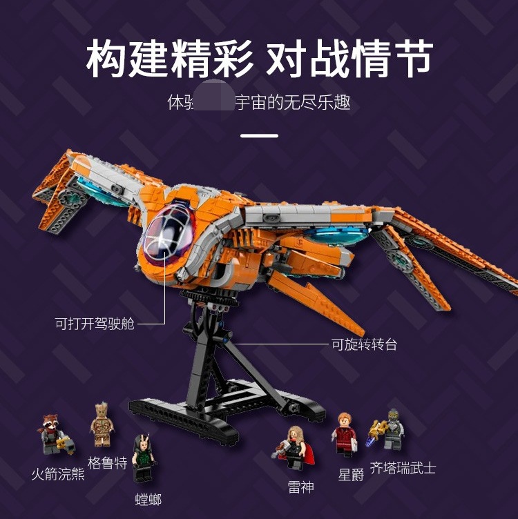 크로스 클래스 슈퍼 히어로 갤럭시 가디언 우주선 76193 토르 크리 에이 티브 조립 빌딩 블록 장식품 장난감 90010