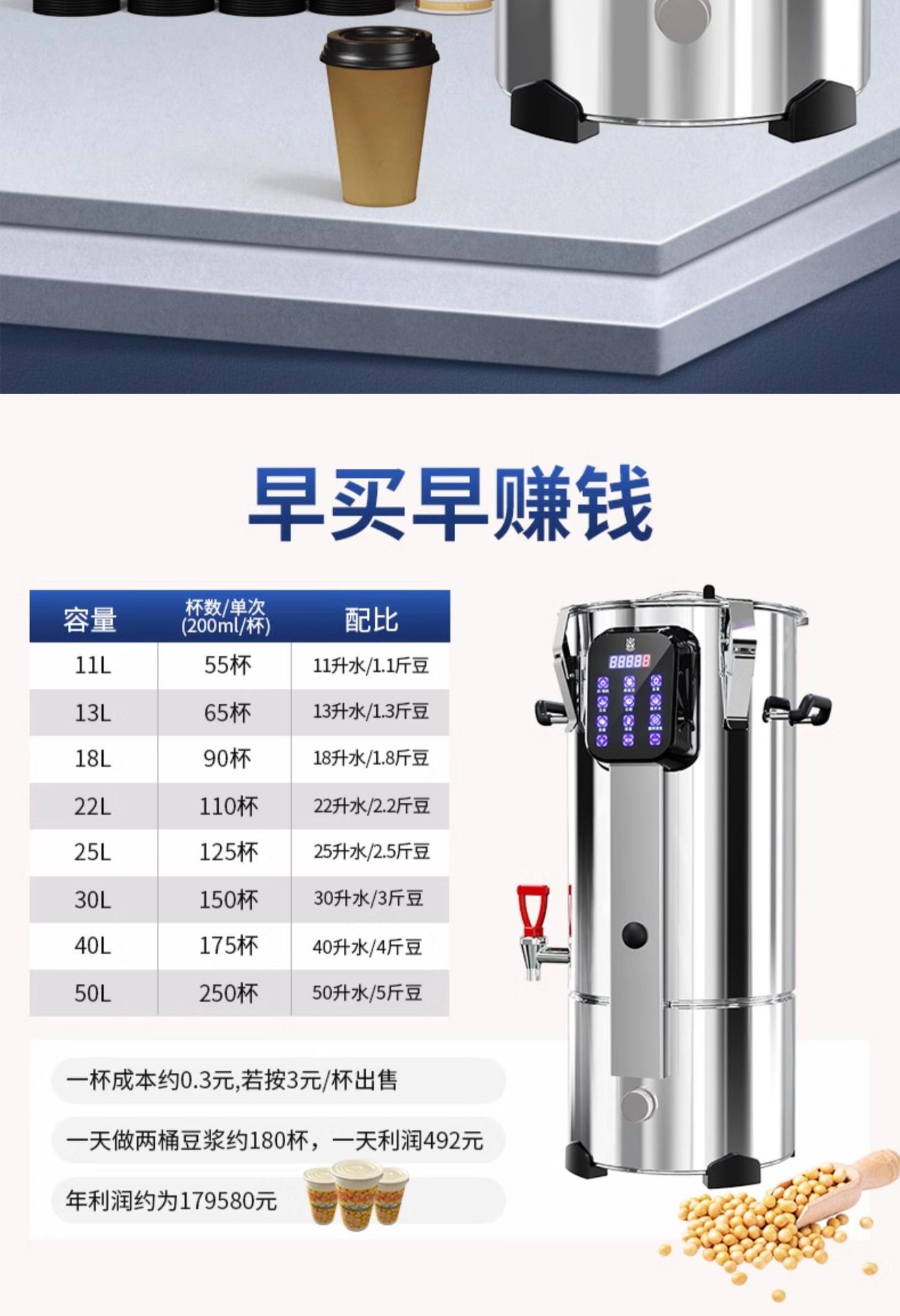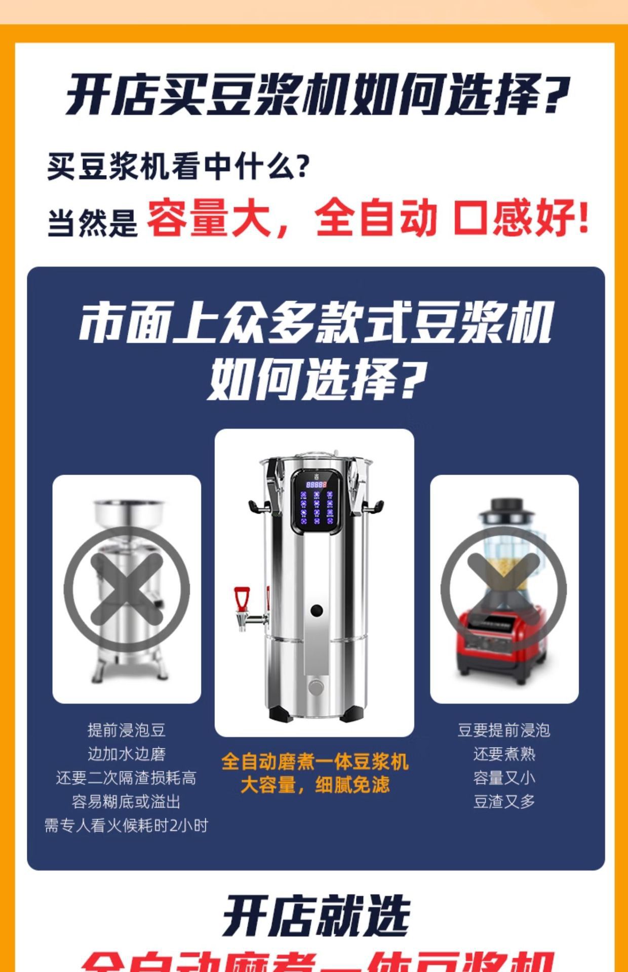 아침 식당용 상업용 두유 기계, 대용량, 완전 자동, 무조리, 갓 갈아서 가열, 대형 연삭 및 조리 일체형