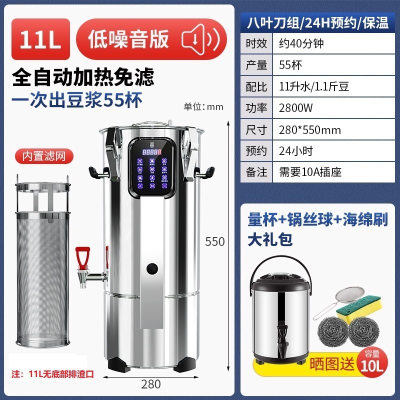 • 11리터 - 평평한 바닥 저소음 버전 [숨겨진 가열 장치 + 페이스트 튜브 없음 + 손쉬운 청소 + 8날 칼