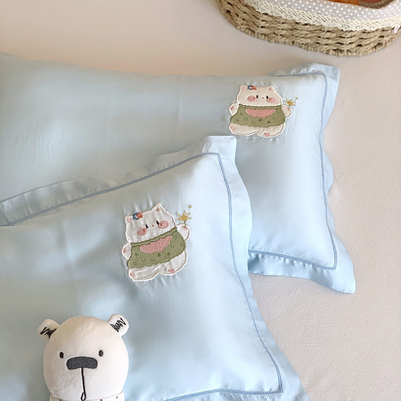 天贴丝布绣花枕套