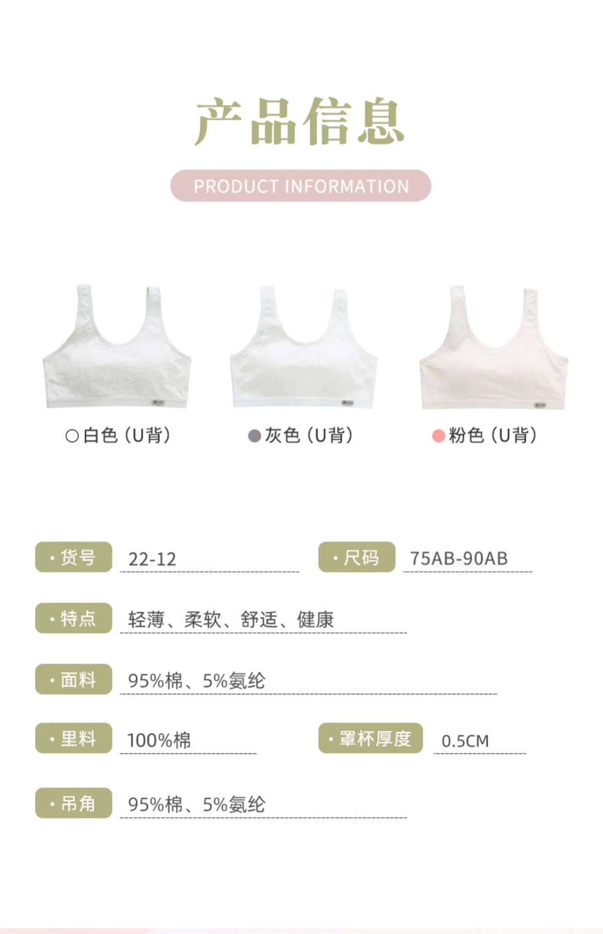여아용 브래지어 조끼 중학교 고교생 사춘기 스포츠 충격방지 런닝 코튼 걸스 속옷