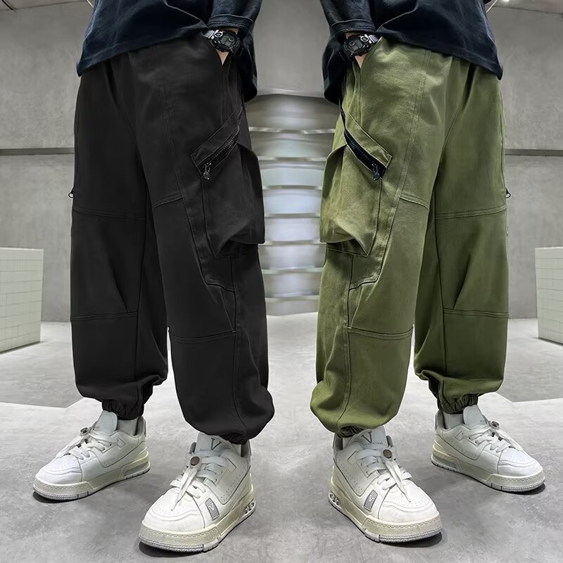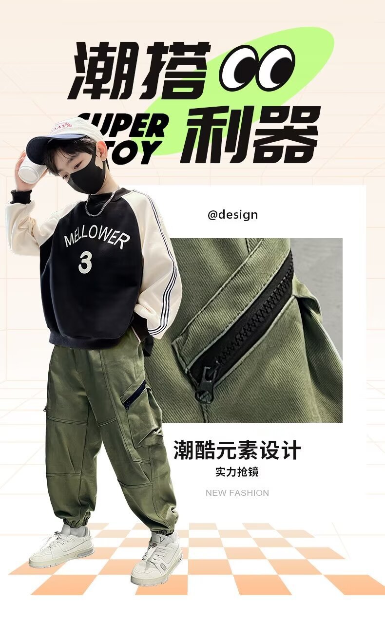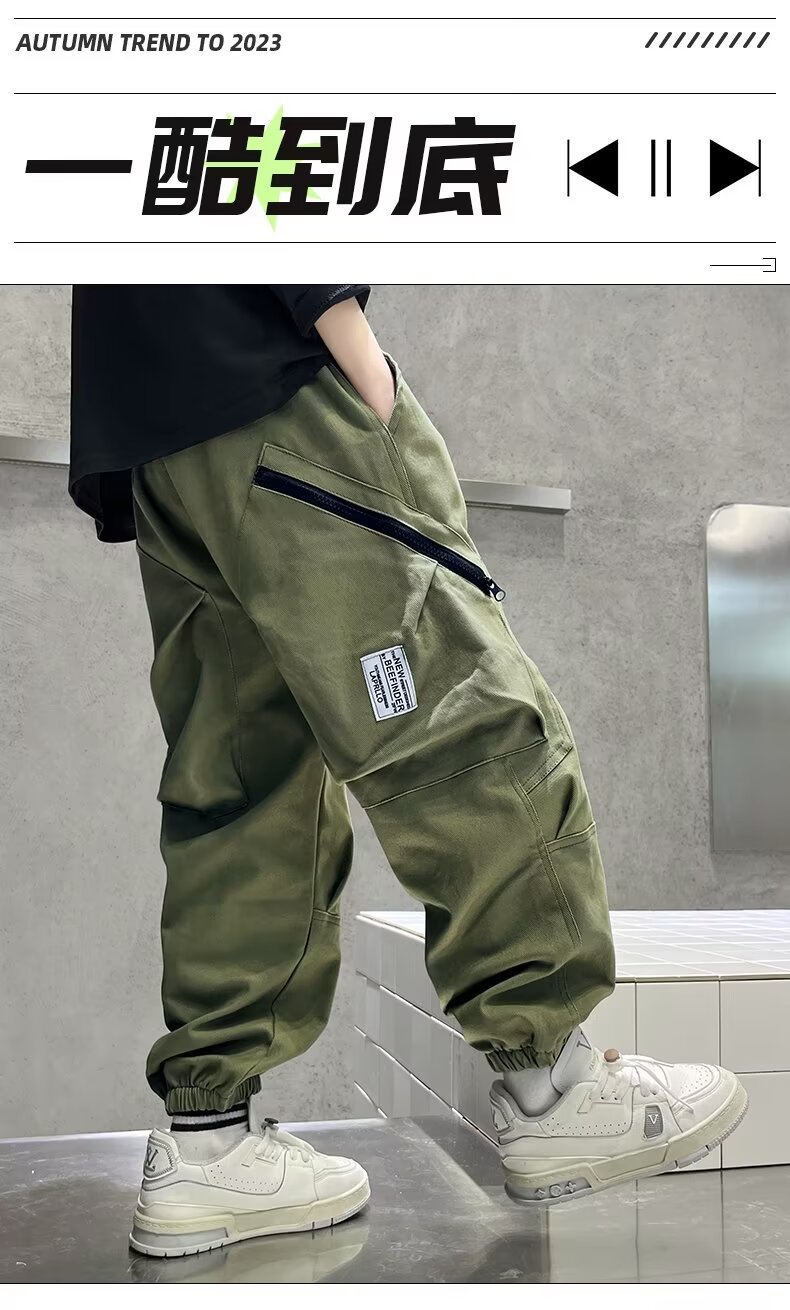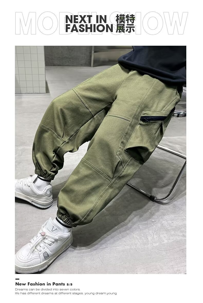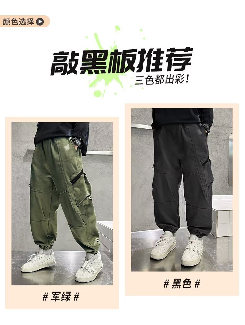 소년 바지 봄과 가을 2024 새로운 가을 원피스 큰 아이들 가을 아이들 멋진 유행 소년 작업복 캐주얼 바지스토어 가기