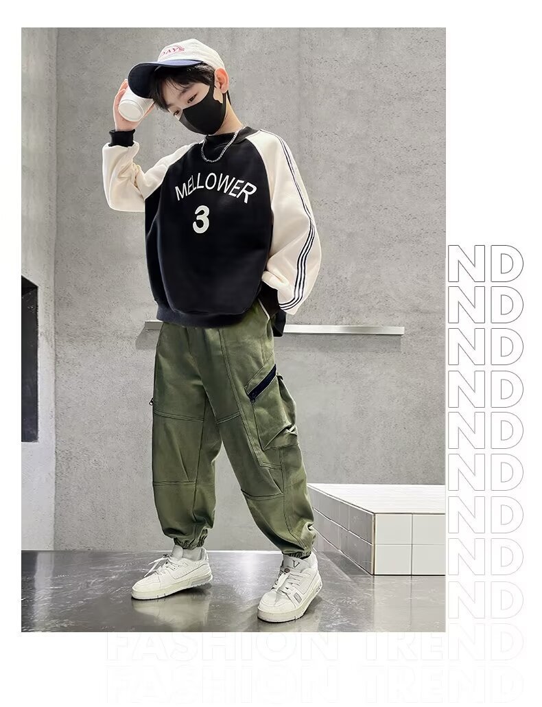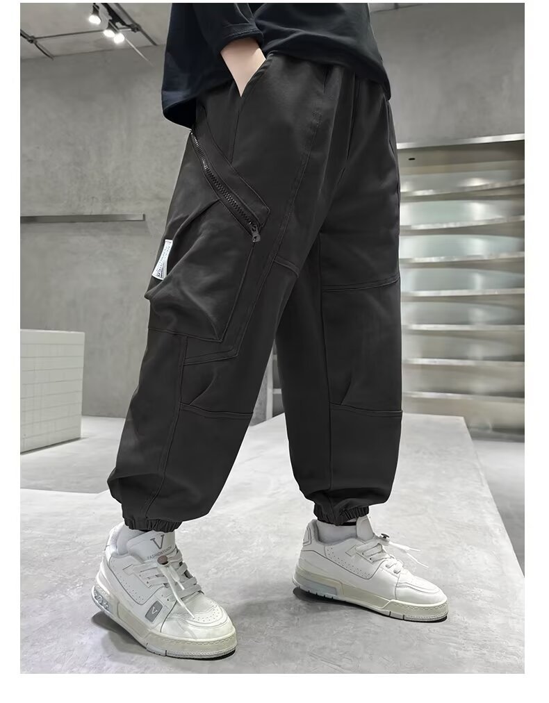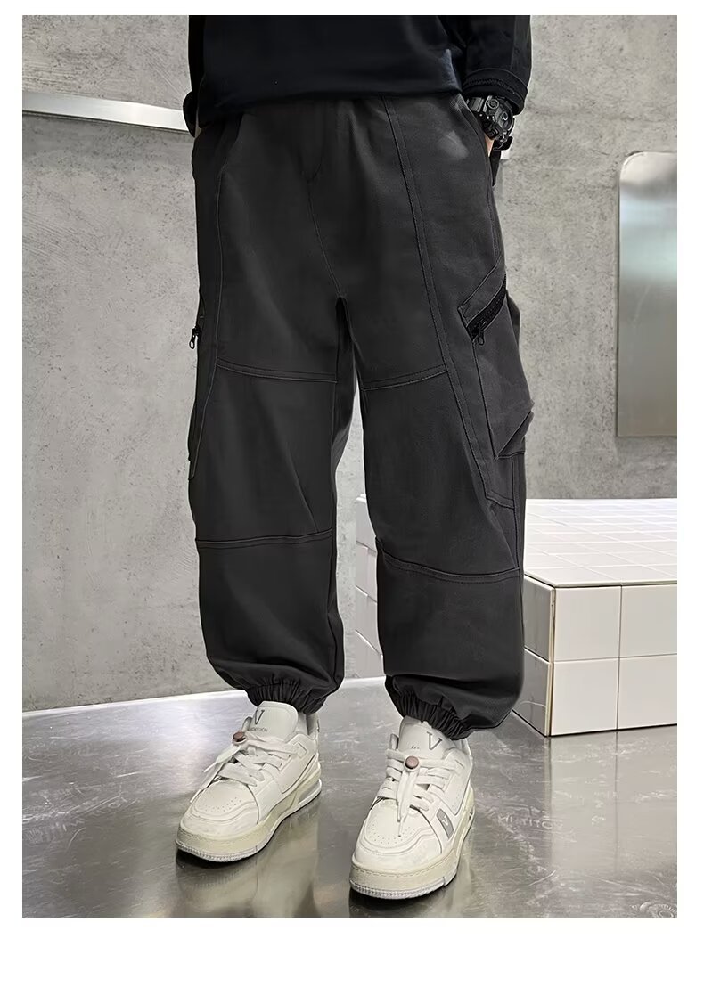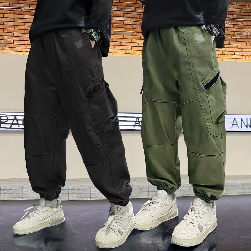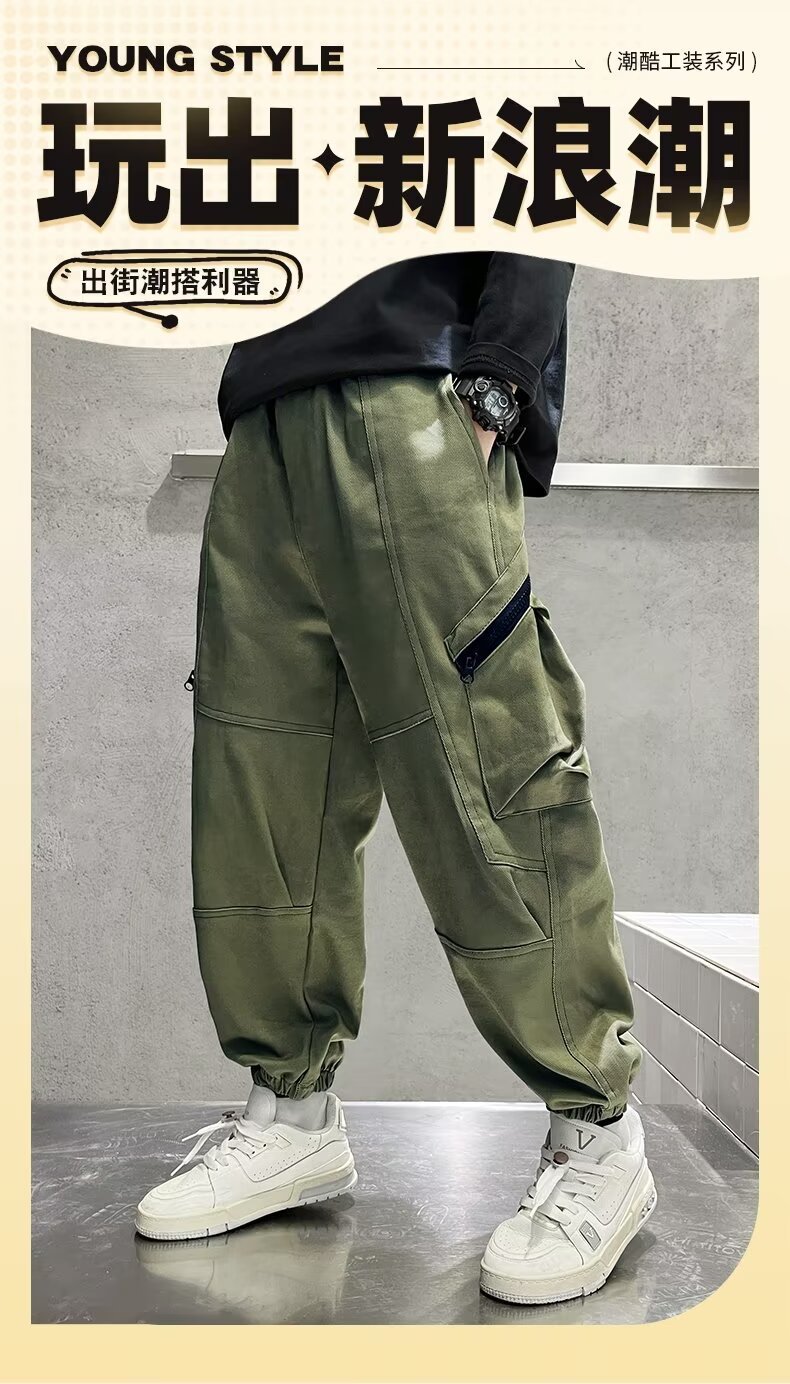 소년 바지 봄과 가을 2024 새로운 가을 원피스 큰 아이들 가을 아이들 멋진 유행 소년 작업복 캐주얼 바지스토어 가기