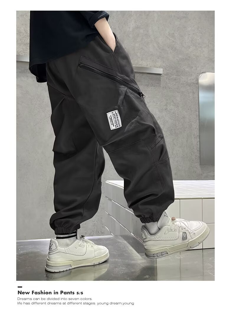 소년 바지 봄과 가을 2024 새로운 가을 원피스 큰 아이들 가을 아이들 멋진 유행 소년 작업복 캐주얼 바지