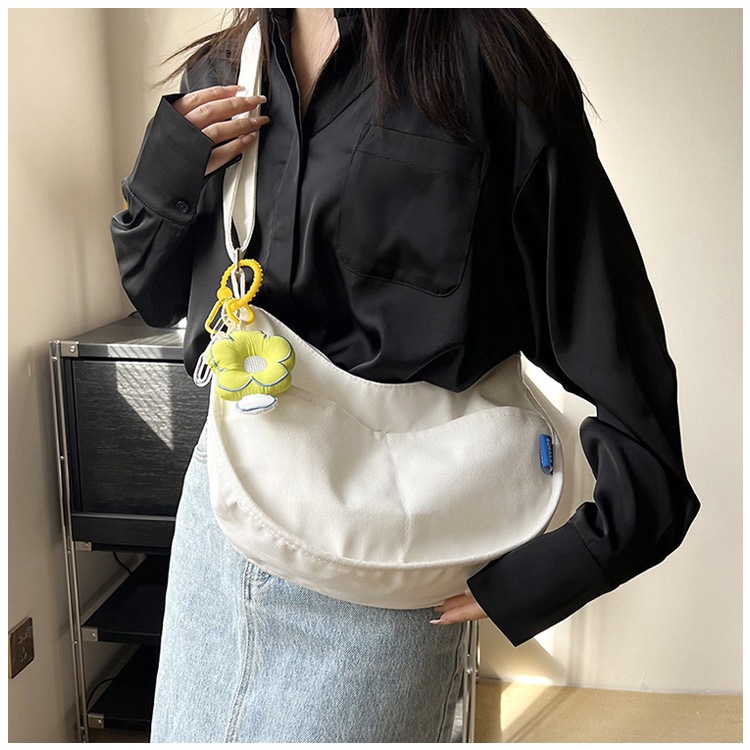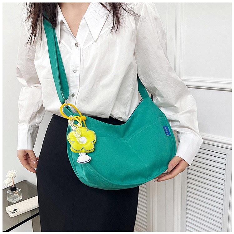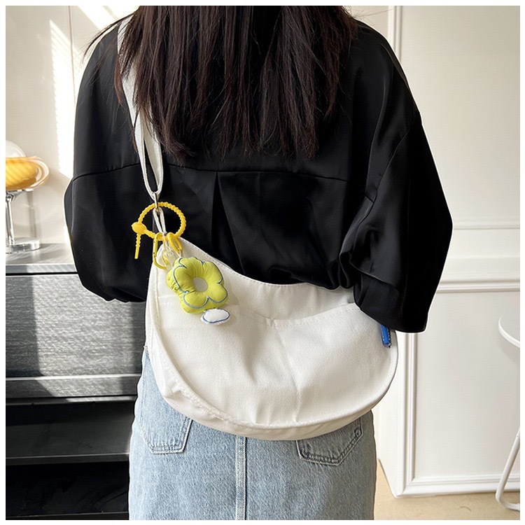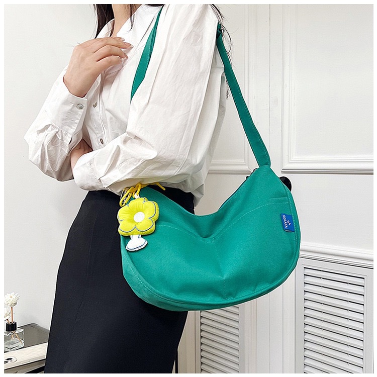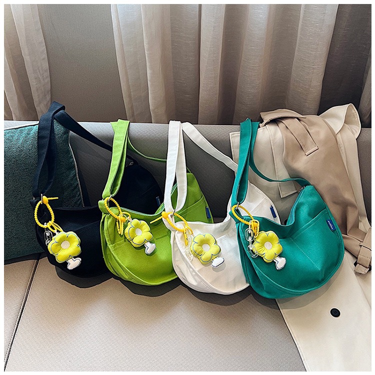 여성용 대용량 캔버스 만두 가방 일본식 새로운 다용도 숄더백 패션 플라워 메신저 백 크로스 바디 백