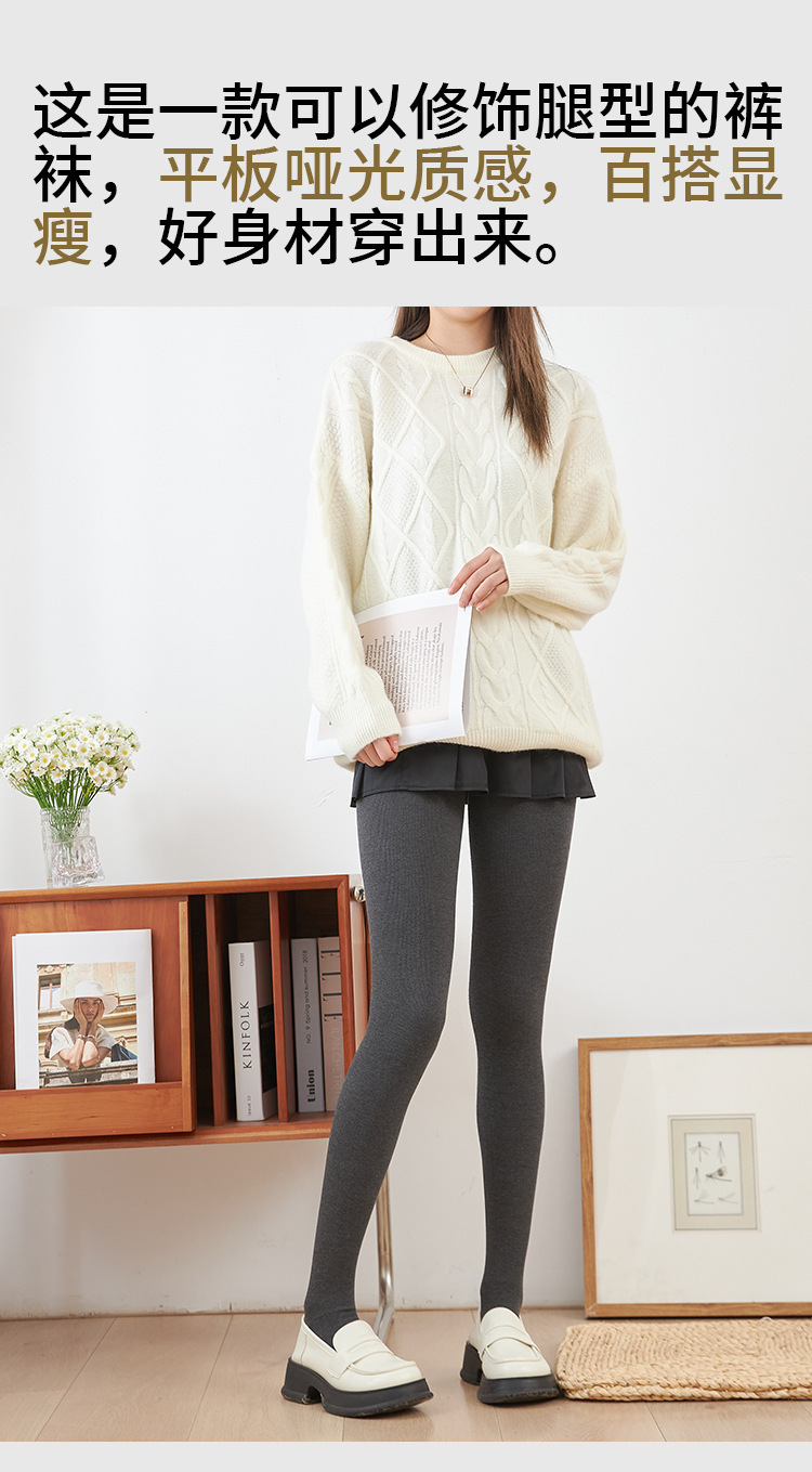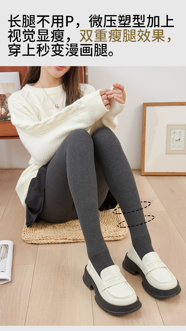회색 레깅스 가을과 겨울 따뜻한 두꺼운 기모 레깅스 여성의 외부 착용 편평한 허리 수직 스트립 면 팬티 스타킹스토어 가기