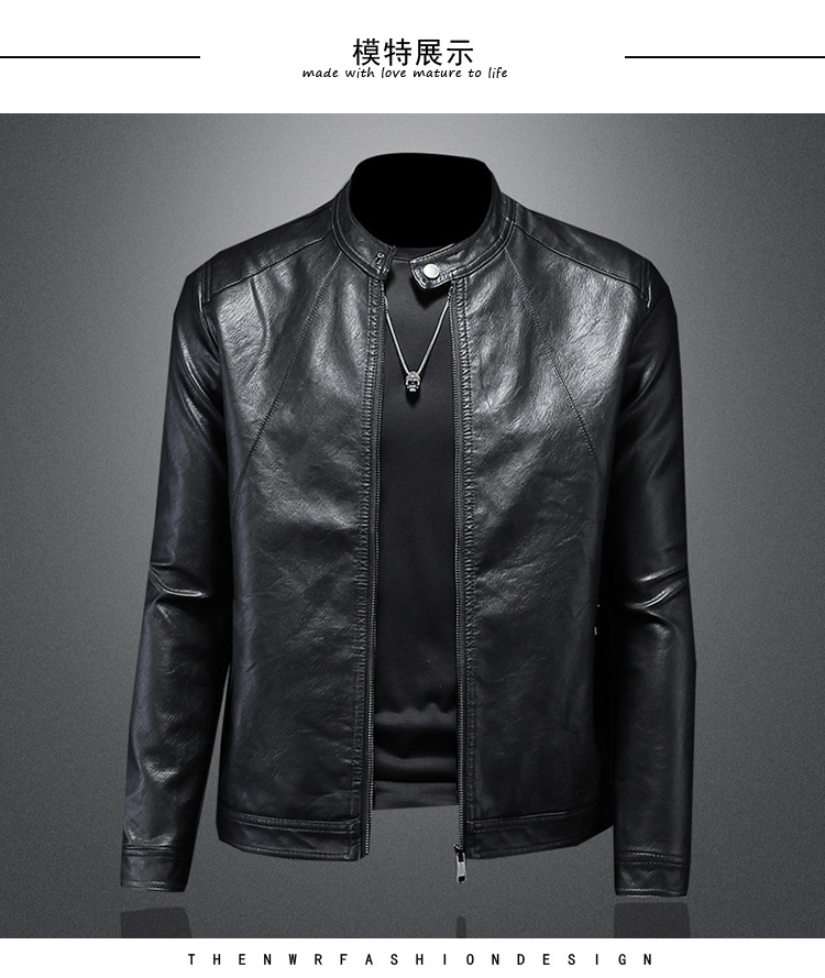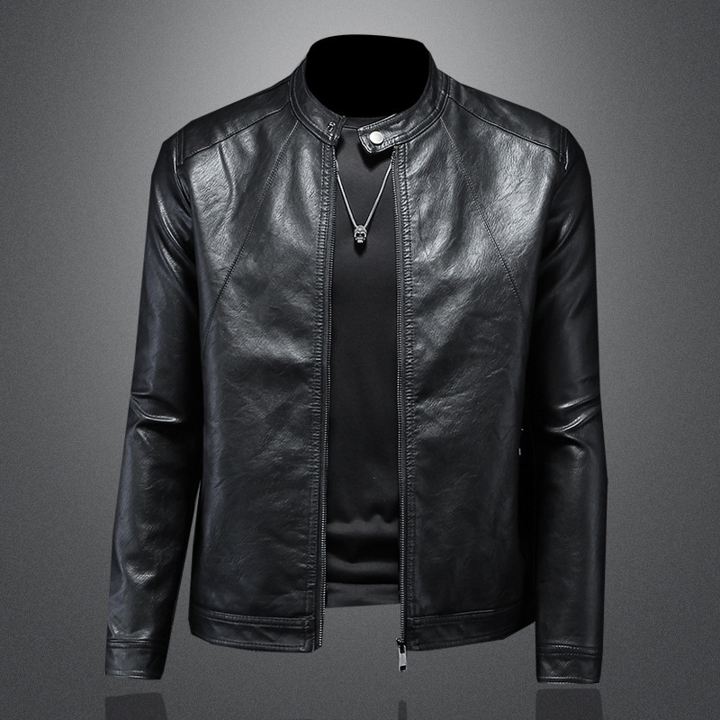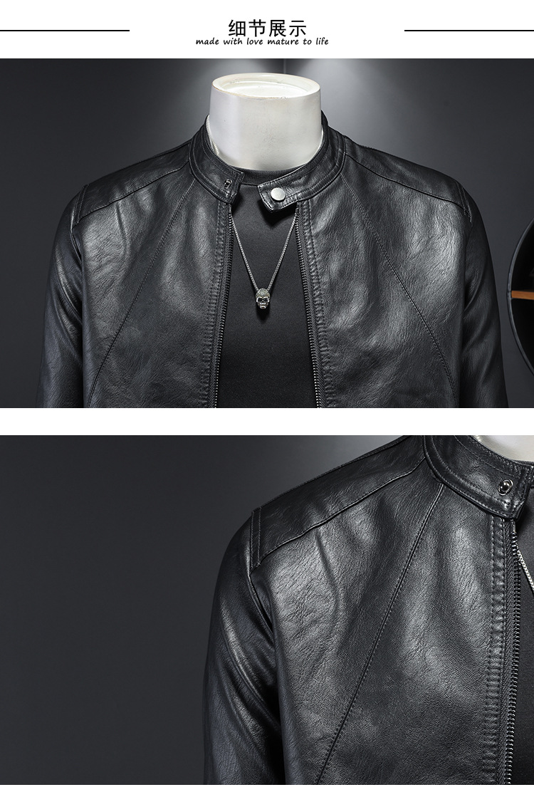 2024 봄, 가을 남성 신작 청소년 가죽 자켓 남성 패션 캐주얼 스탠드 칼라 얇은 가죽 자켓 트렌디 남성상의스토어 가기