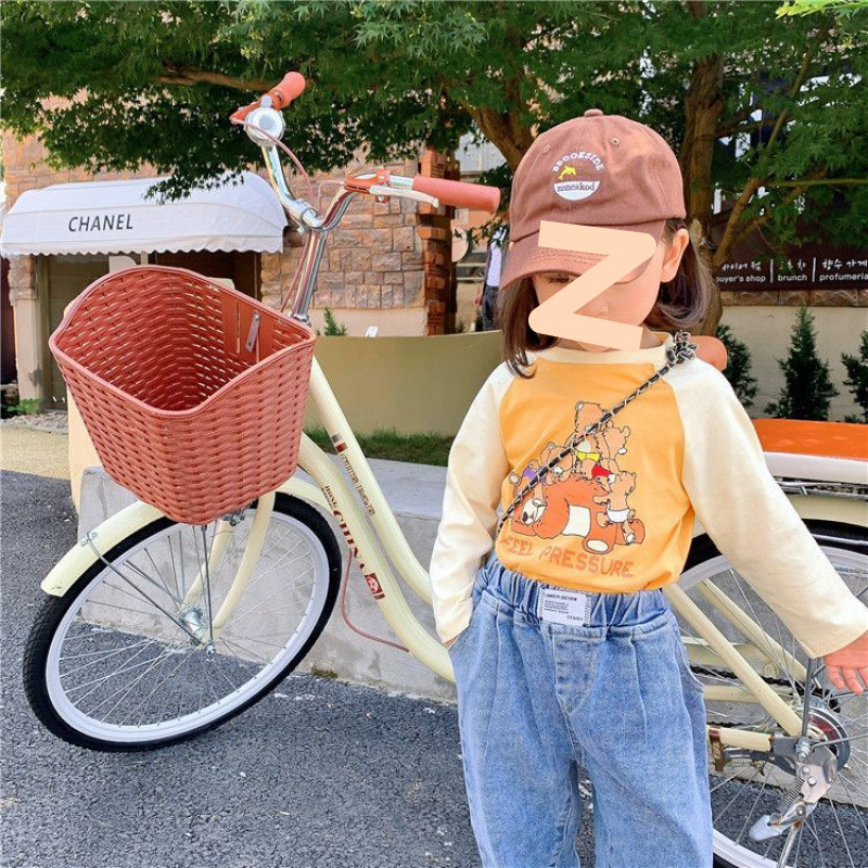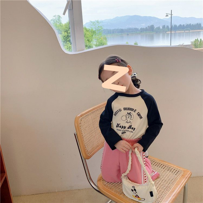 2025 봄과 가을 새로운 아동복 컬러 매칭 코튼 베어 프린트 라운드 넥 라글란 슬리브 트렌디 티셔츠 소년 소녀