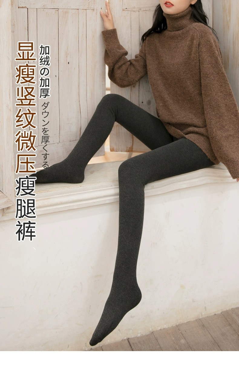 회색 기모 레깅스 여성용 외부 착용 수직 스레드 높은 허리 팬티 스타킹 두꺼운 가을과 겨울 동북 면화 바지 따뜻한 바지스토어 가기