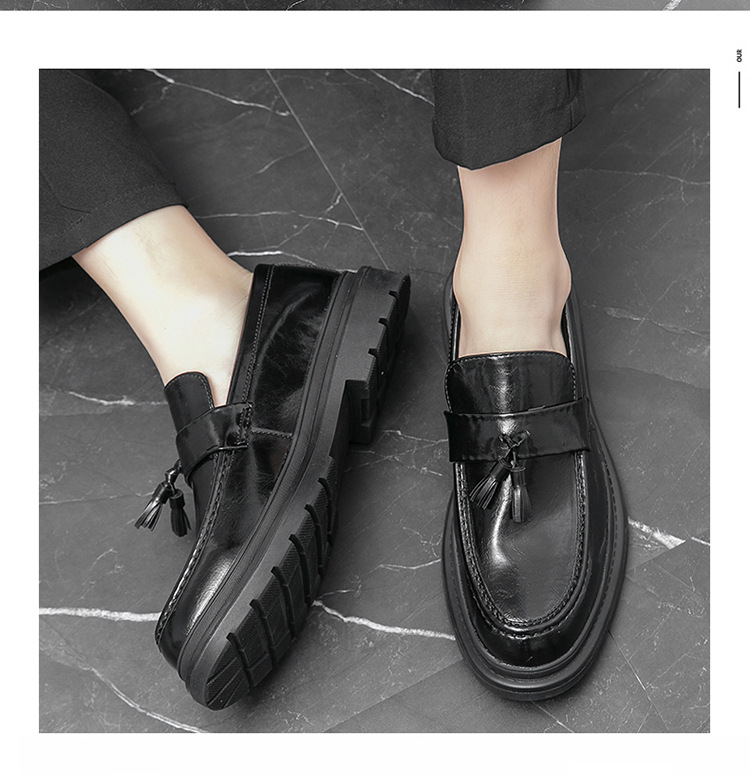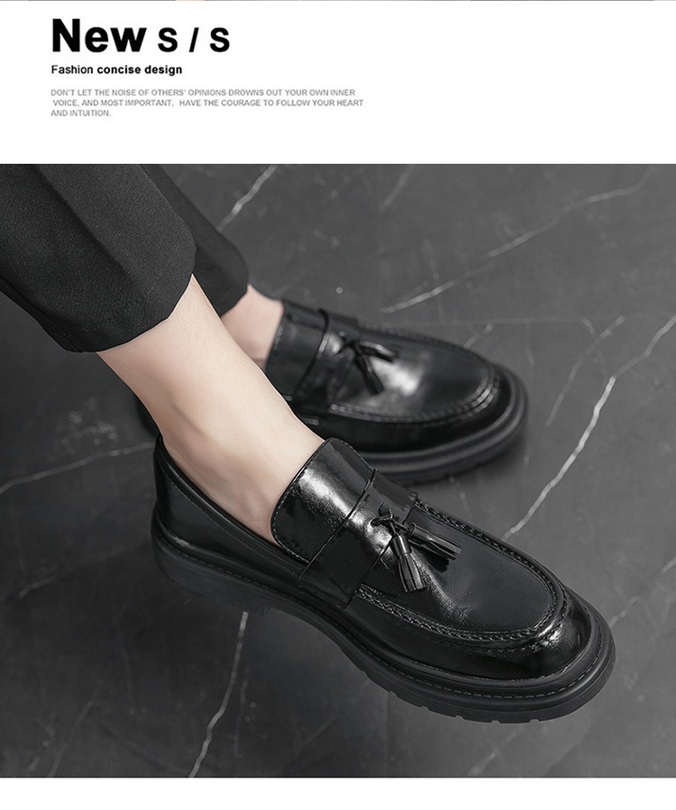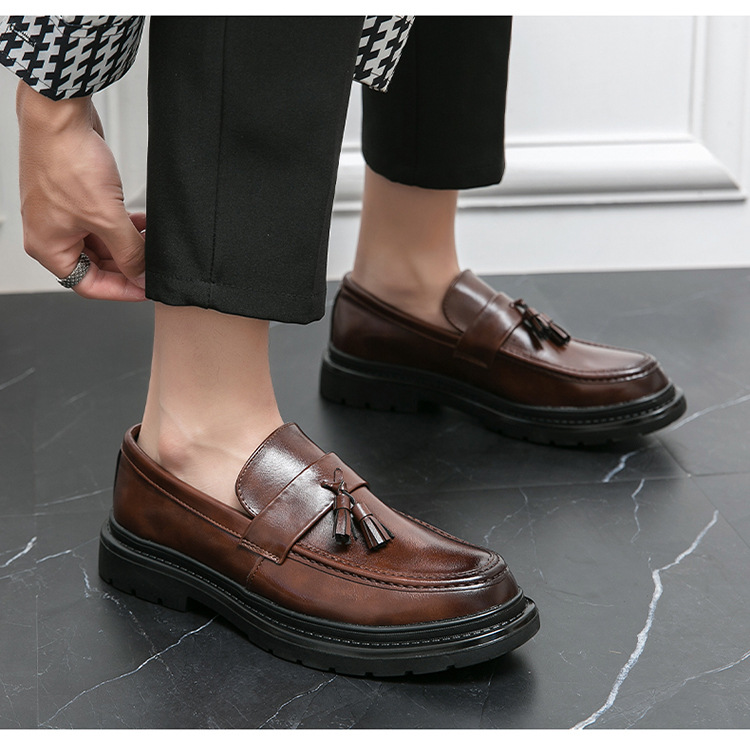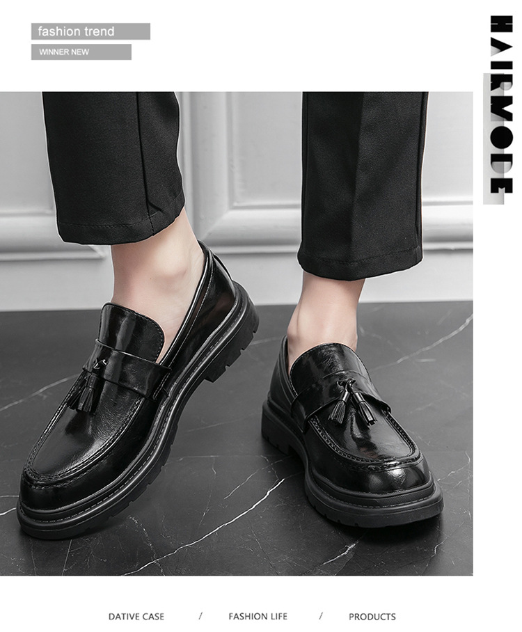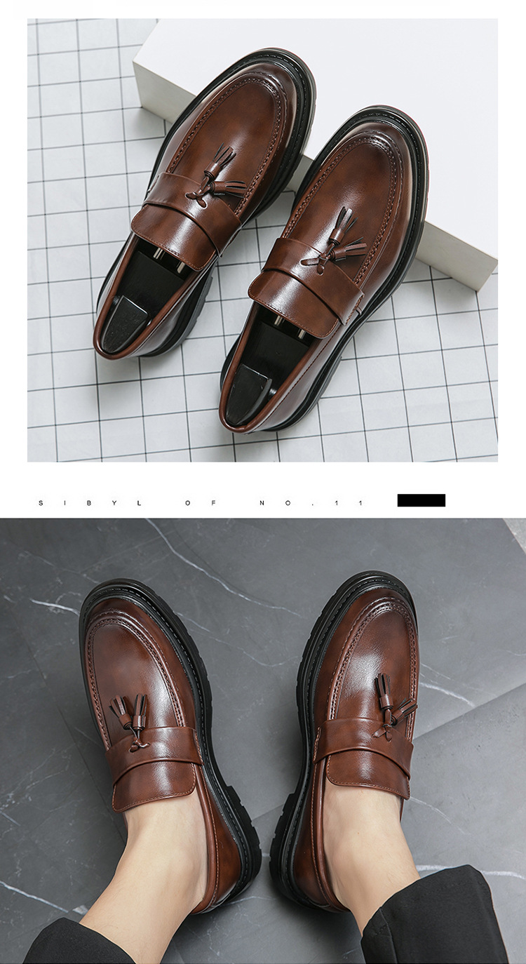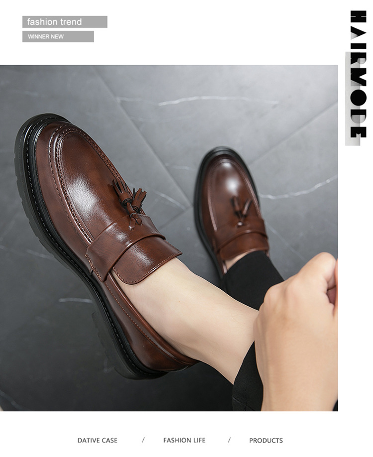 영국 캐주얼 가죽 신발 남성용 슬립 온 게으른 신발 남성 신발 복고풍 두꺼운 밑창 비즈니스 남성 술 로퍼 남성스토어 가기