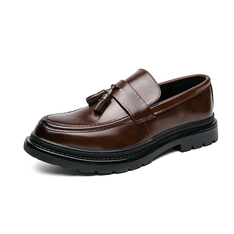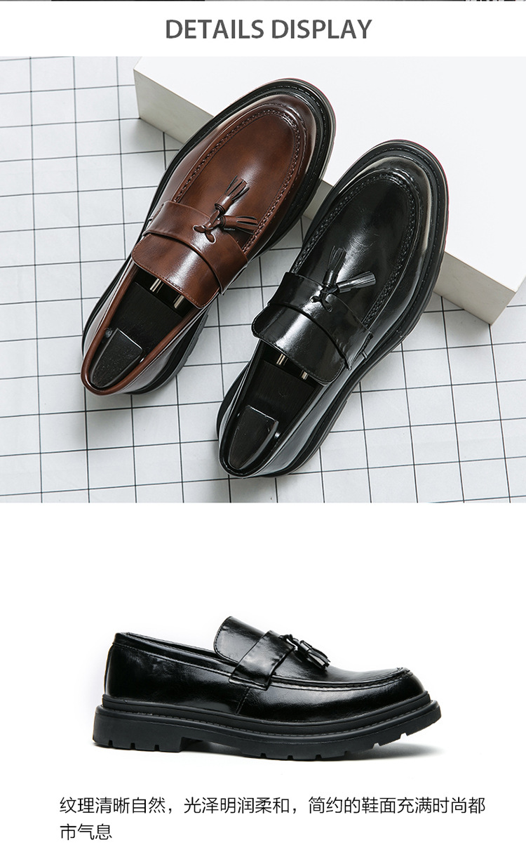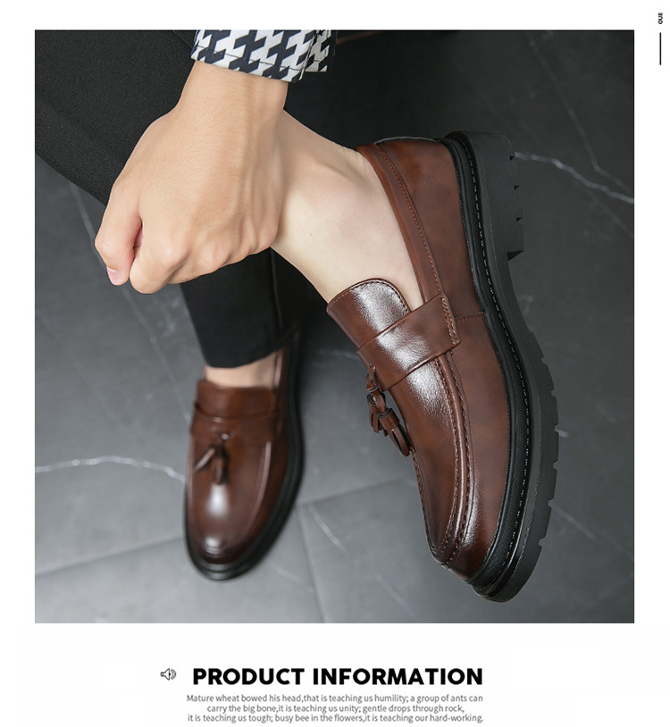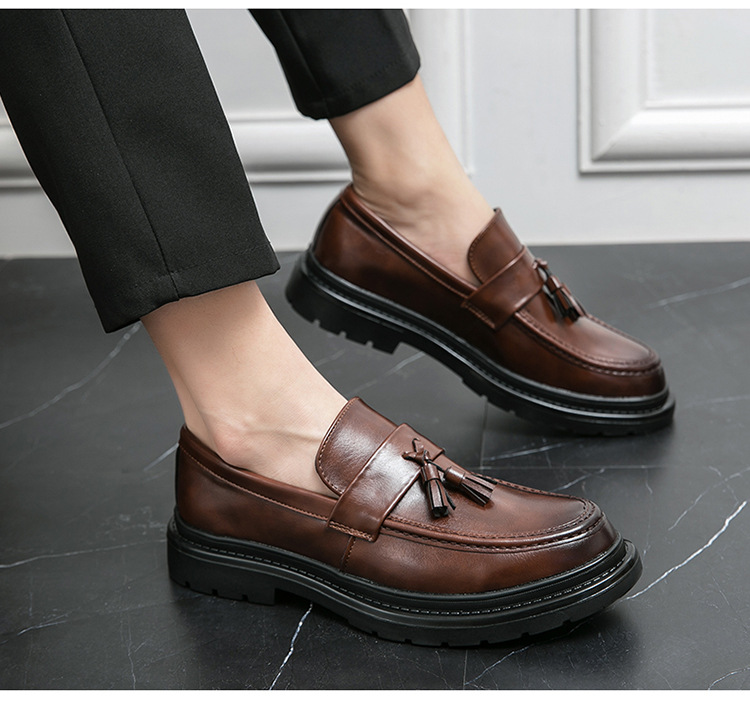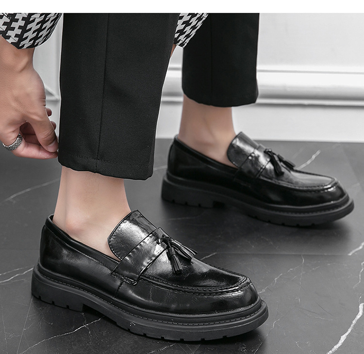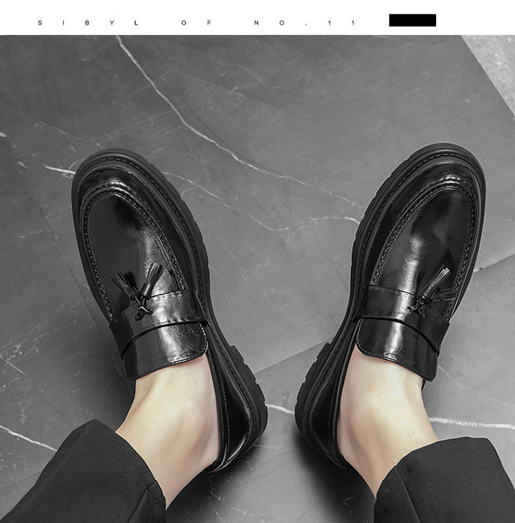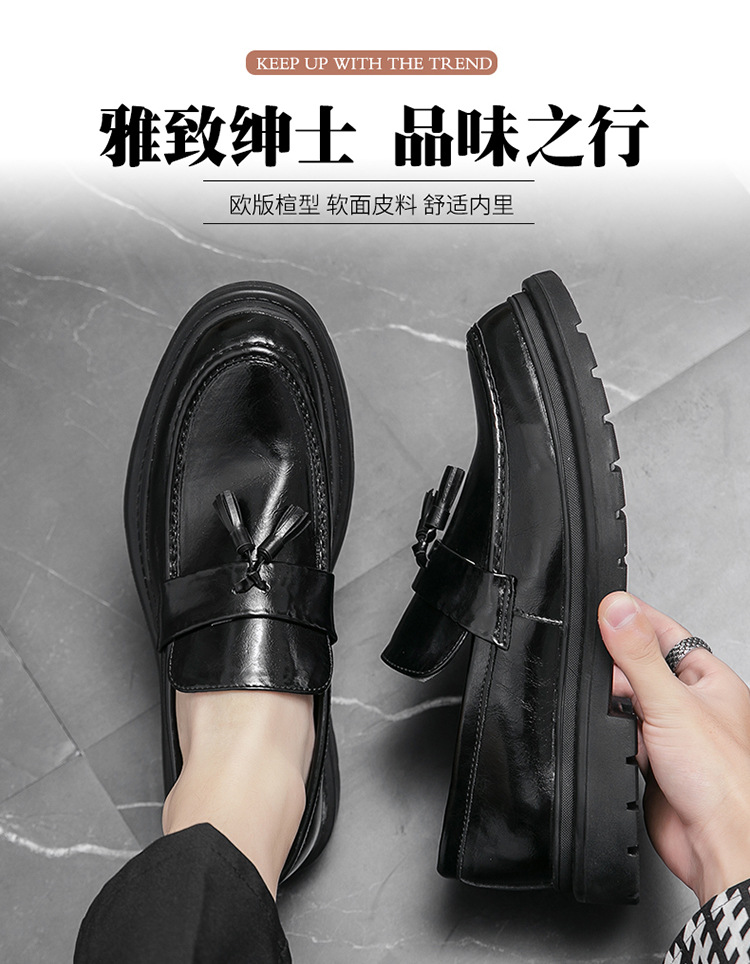 영국 캐주얼 가죽 신발 남성용 슬립 온 게으른 신발 남성 신발 복고풍 두꺼운 밑창 비즈니스 남성 술 로퍼 남성스토어 가기