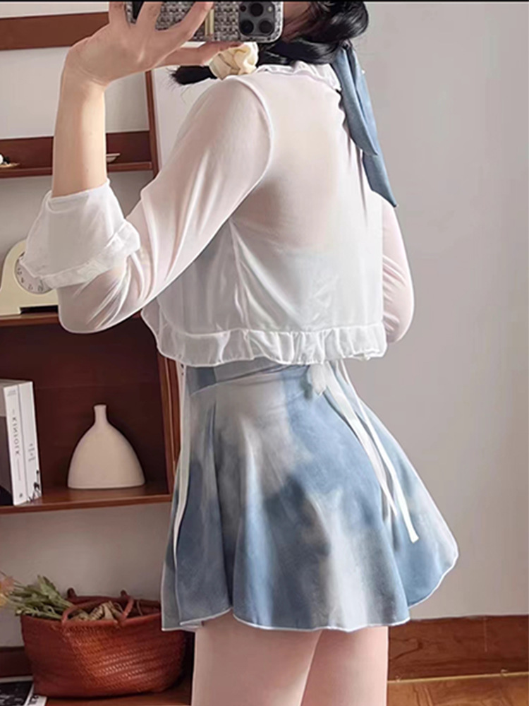 장미 같은 스타일의 수영복 넥타이-염료 블루 스파이스 소녀 스타일 목 스커트 스타일 벨리 커버 슬리밍 수영복 여성 이야기