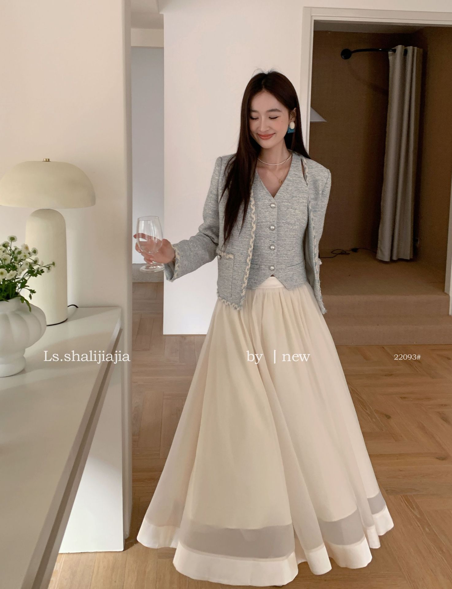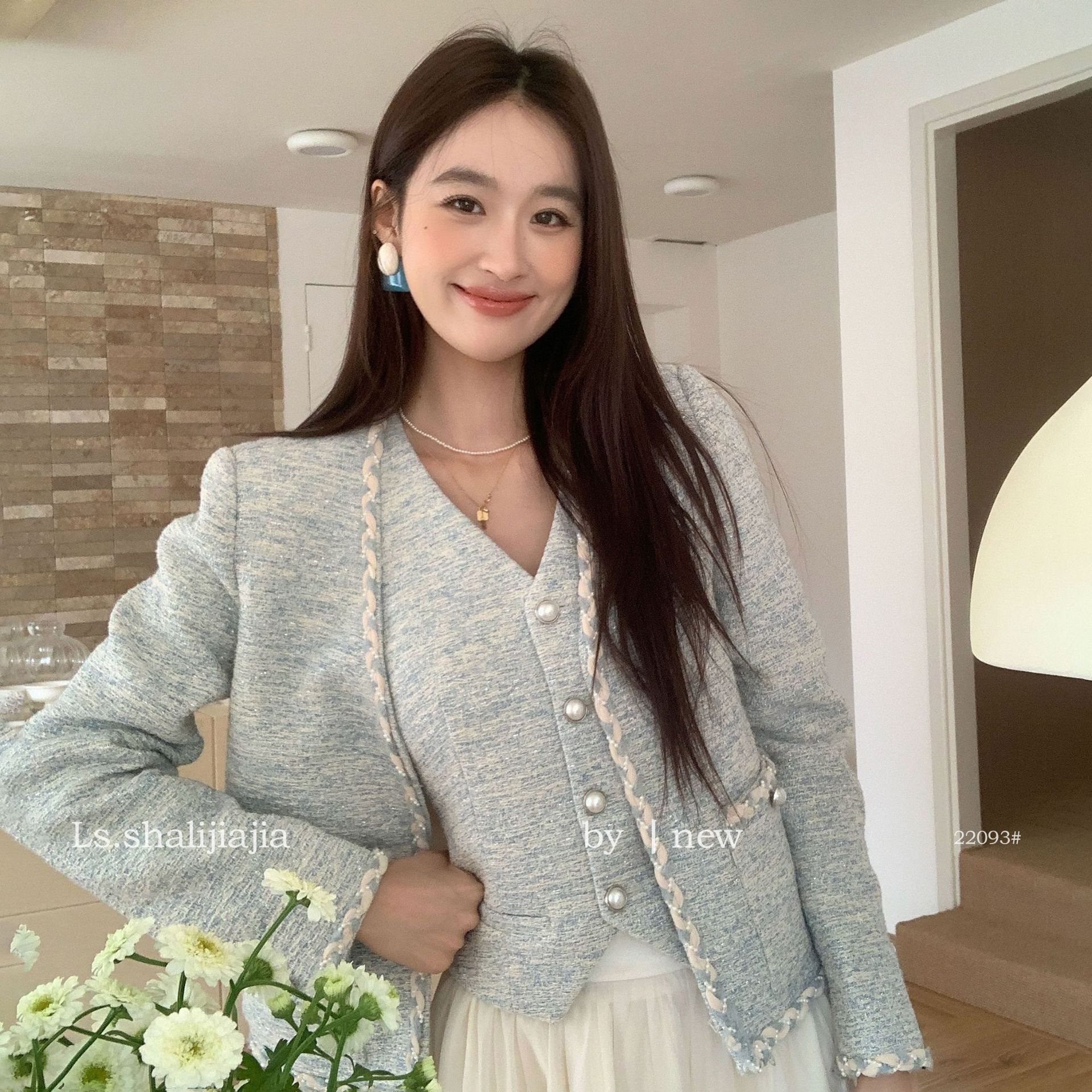 작은 향수 스타일의 프랑스 하이 엔드 감각에 LS 세트 디자인 기질 짧은 코트 카디건 조끼 여성 22093 #스토어 가기