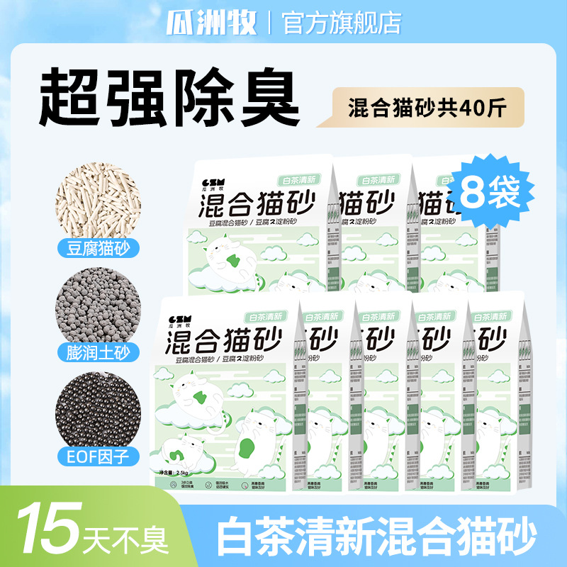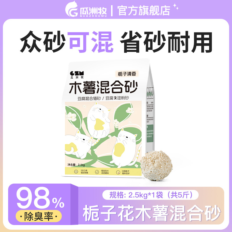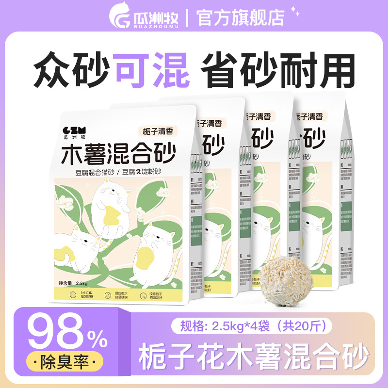 Guazhou Mu Cassava 고양이 모래 공장 먼지 없는 혼합 두부 고양이 모래 벤토나이트 비 스틱 바닥 탈취제 광석 모래 근처 탈취