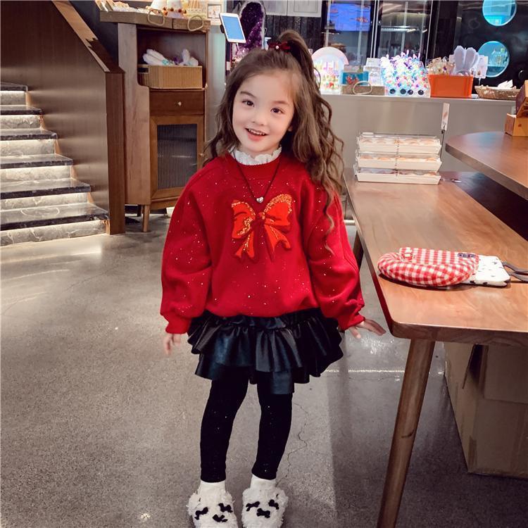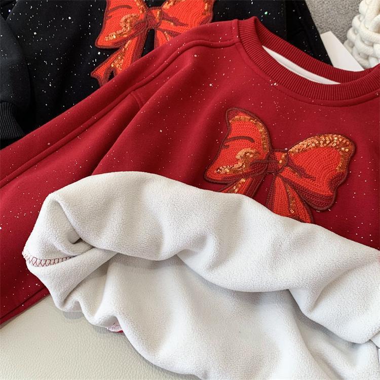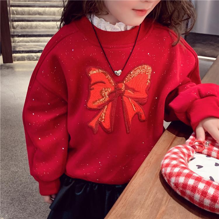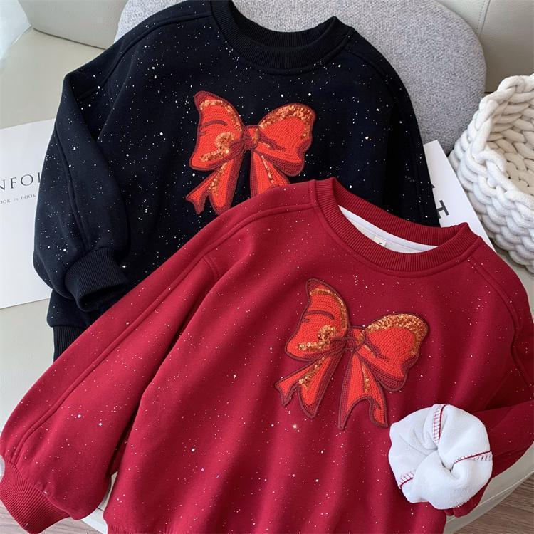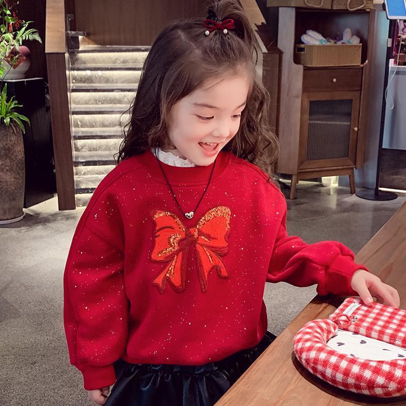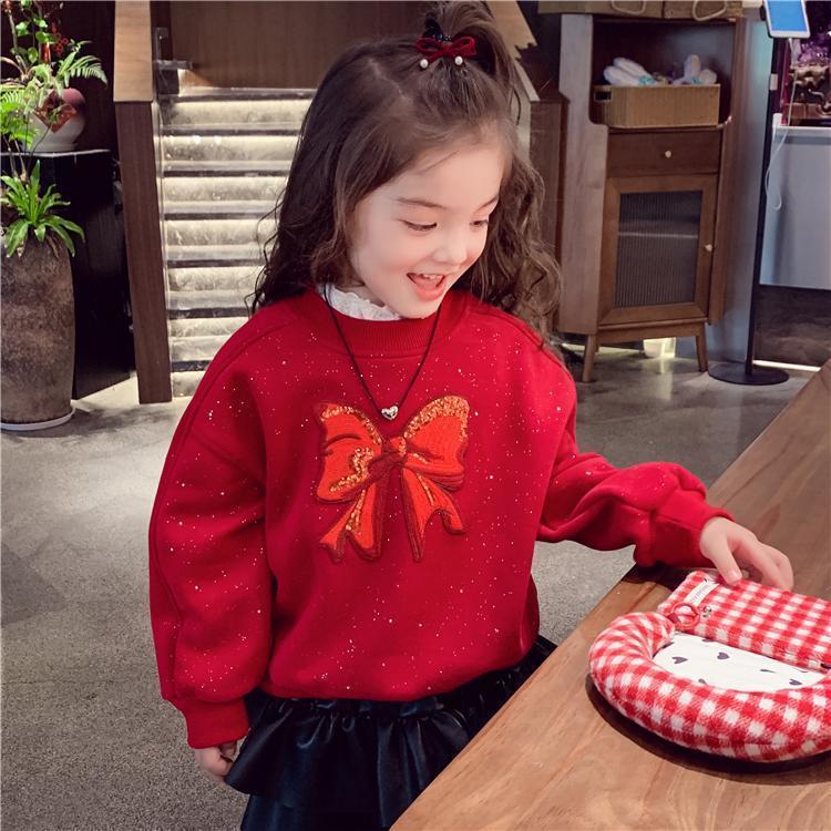여자 기모 스웨터 겨울 2025 새로운 어린이 캐주얼 긴 소매 세련된 탑 어린 소녀 풀오버베이스 셔츠