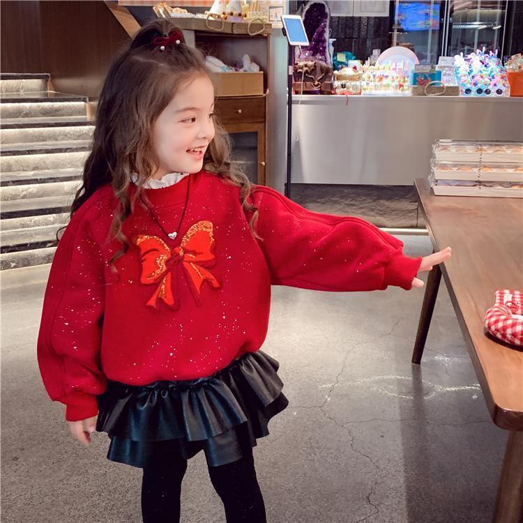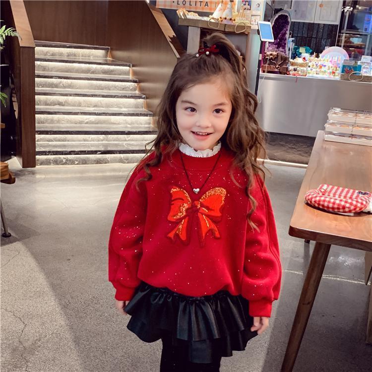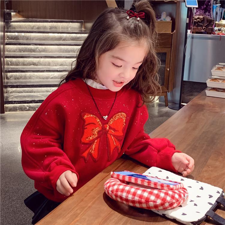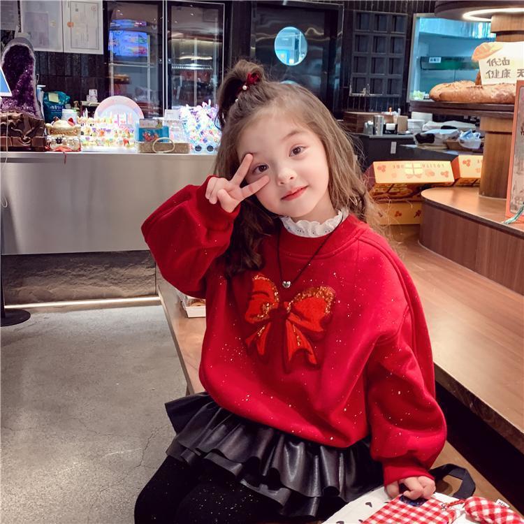 여자 기모 스웨터 겨울 2025 새로운 어린이 캐주얼 긴 소매 세련된 탑 어린 소녀 풀오버베이스 셔츠스토어 가기