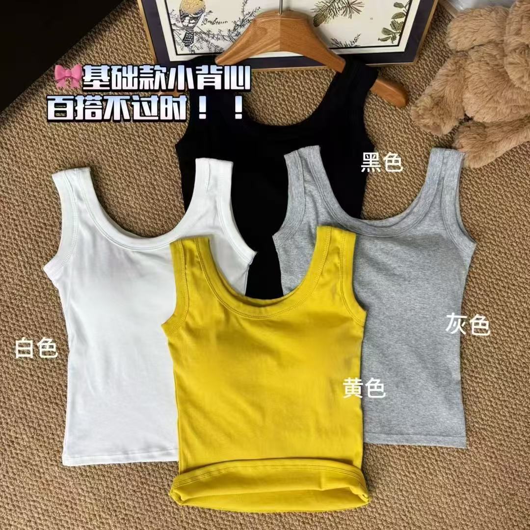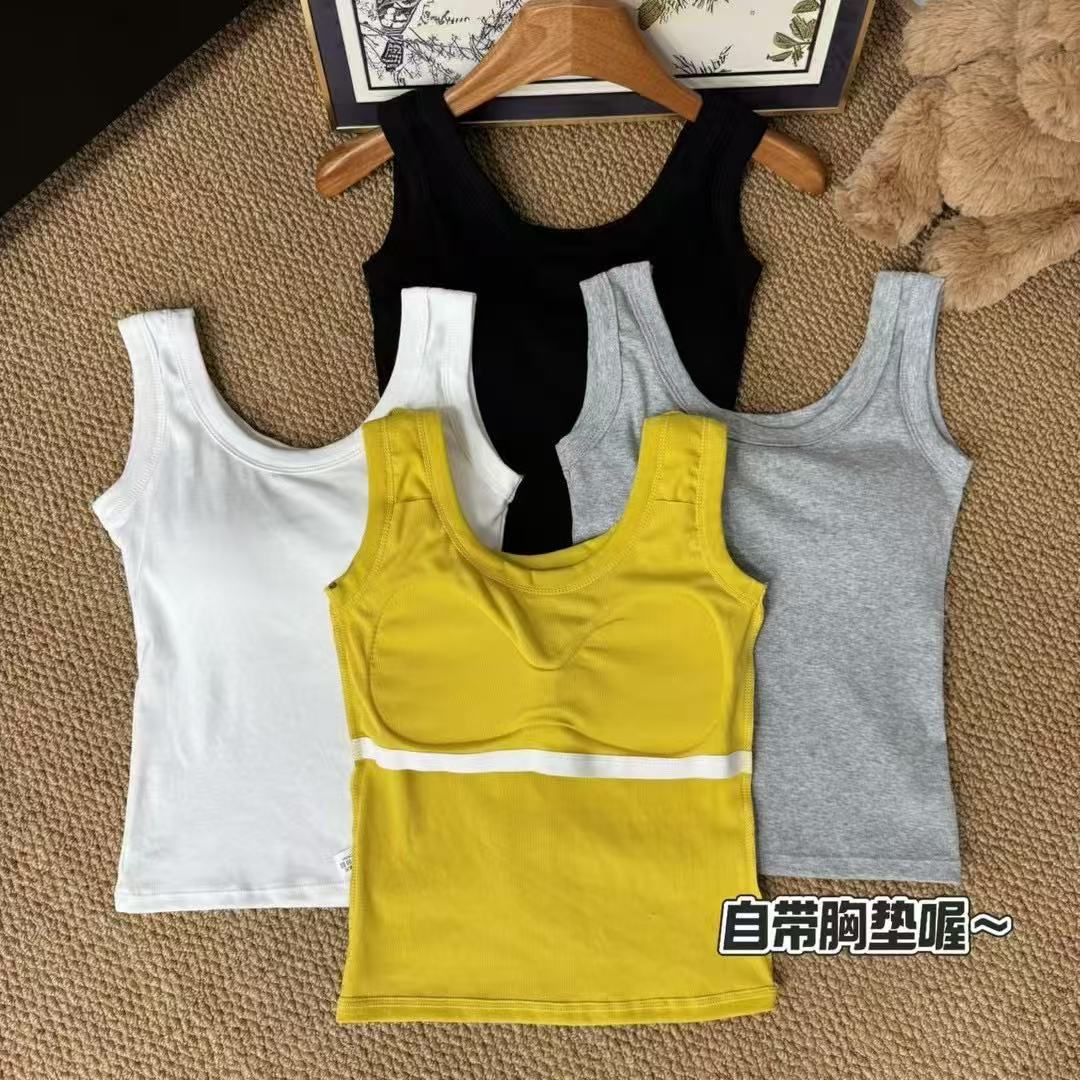 가슴 패드가 있는 새로운 여름 스타일의 불투명한 솔리드 컬러 캐미솔, 겉옷 및 이너웨어용, 슬림핏 및 다용도 스포츠 탑스토어 가기