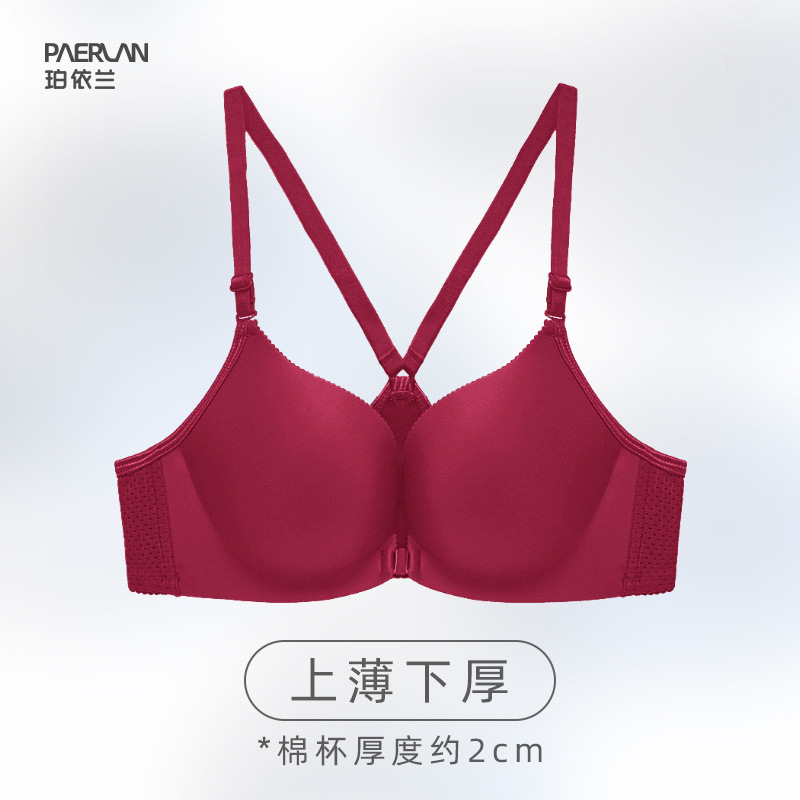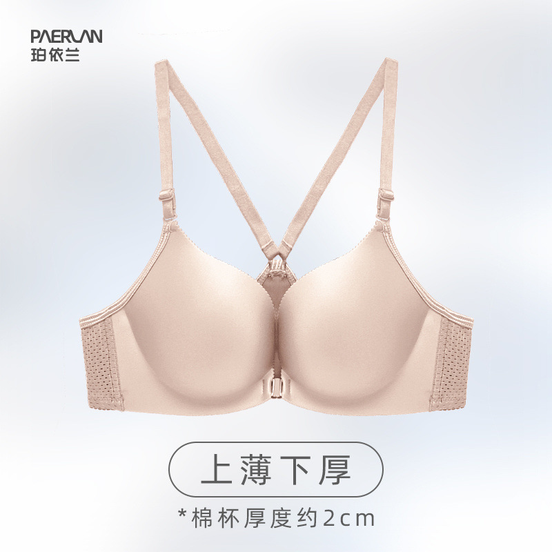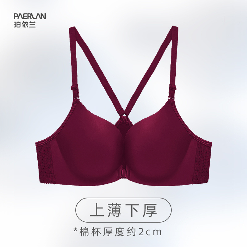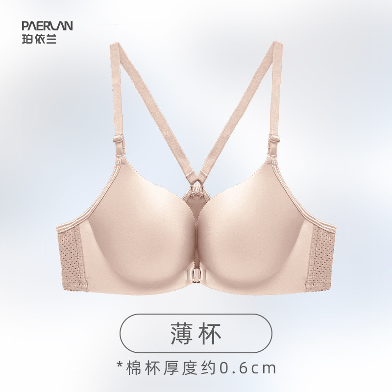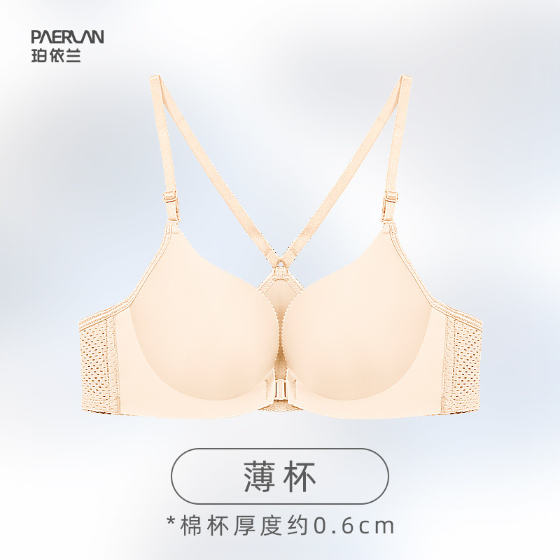 Poilan 와이어 프리 프론트 버튼 브라 원피스 심리스 스포츠 미끄럼 방지 어깨 작은 가슴 푸시 업 여성용 뷰티 백 속옷스토어 가기