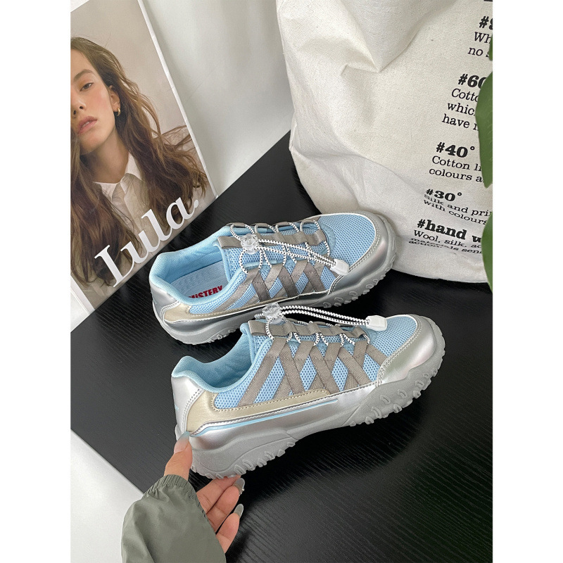 여성을위한 한국 스타일 틈새 발레 스타일 야외 스포츠 하이킹 신발 2025 새로운 두꺼운 밑창 메쉬 캐주얼 아빠 육군 훈련 신발