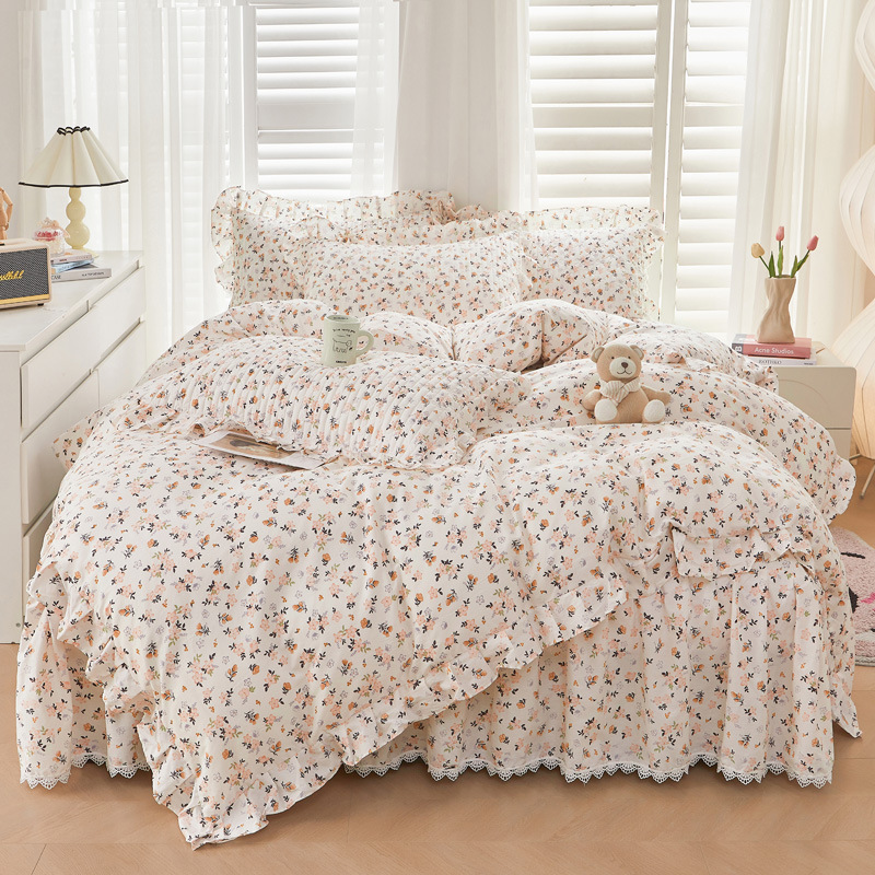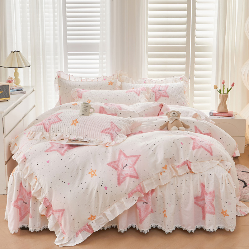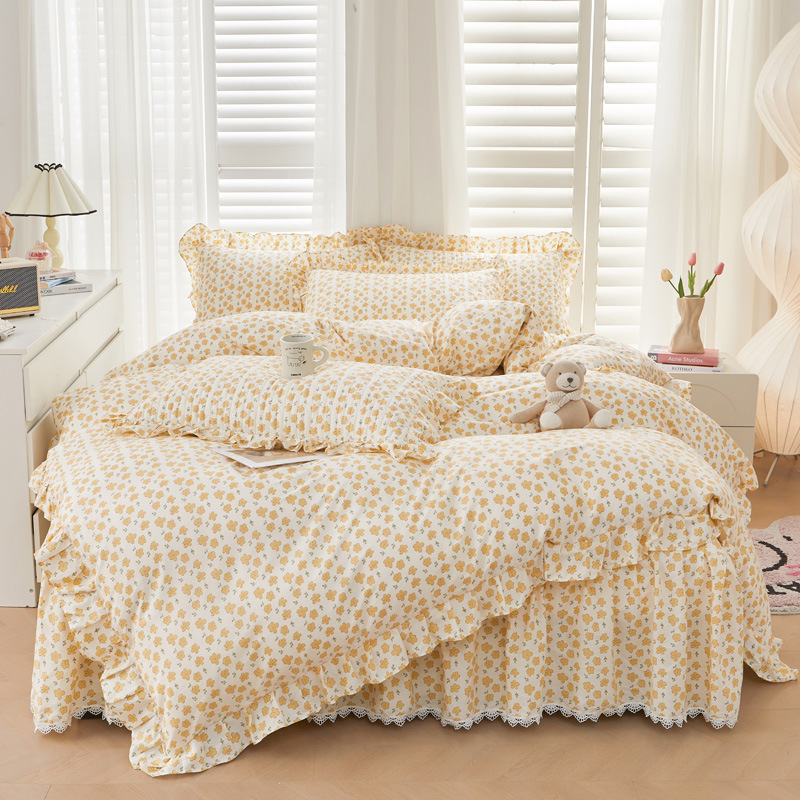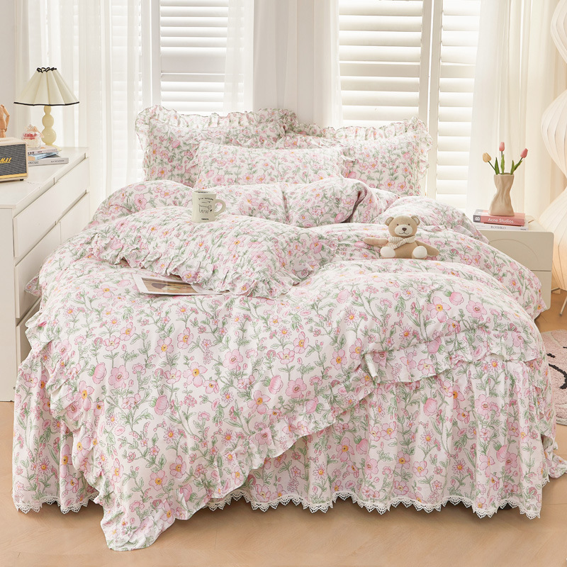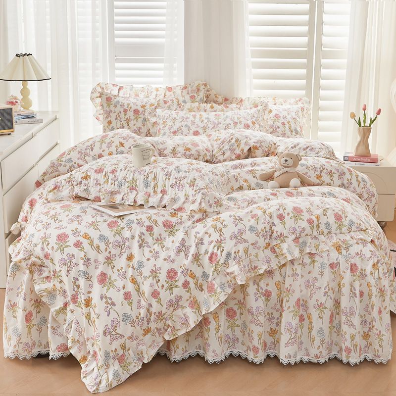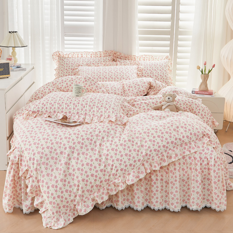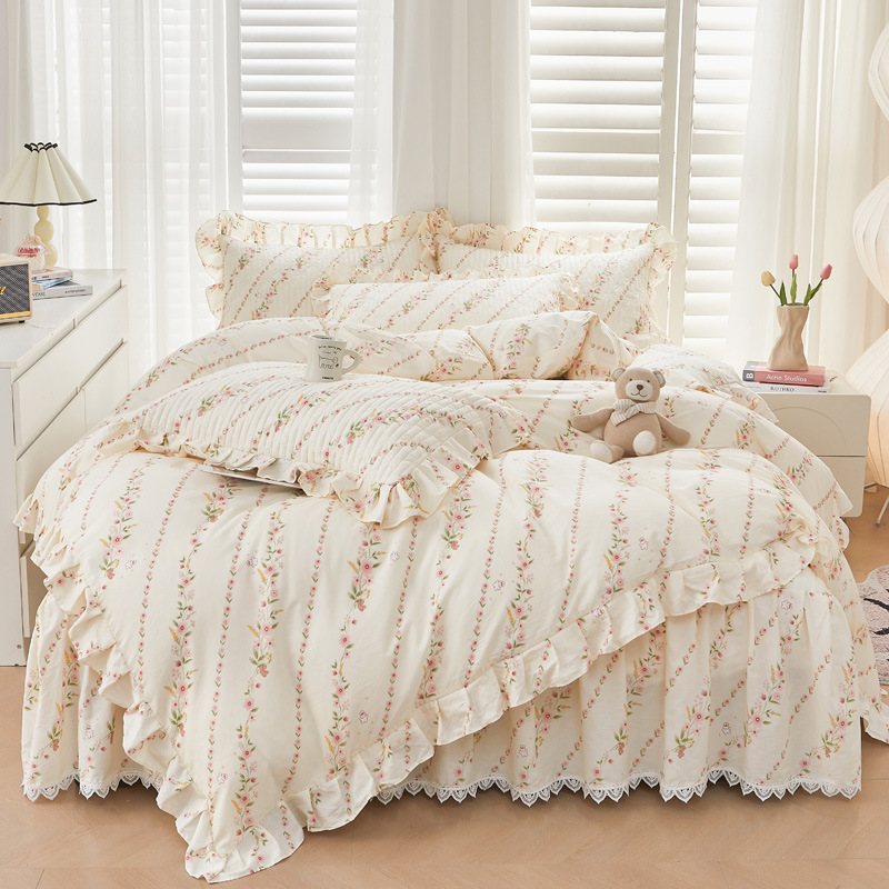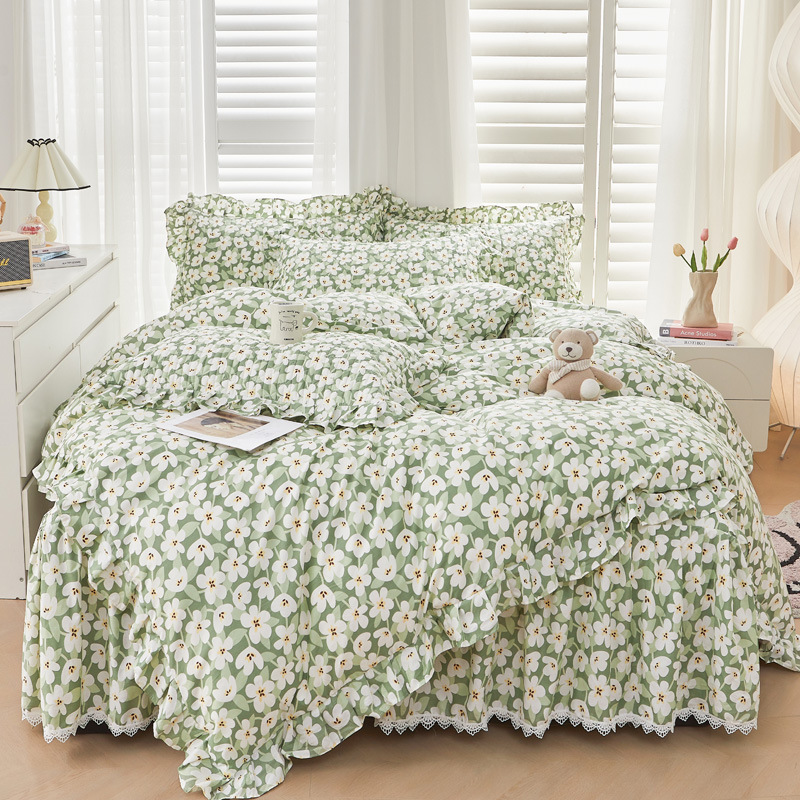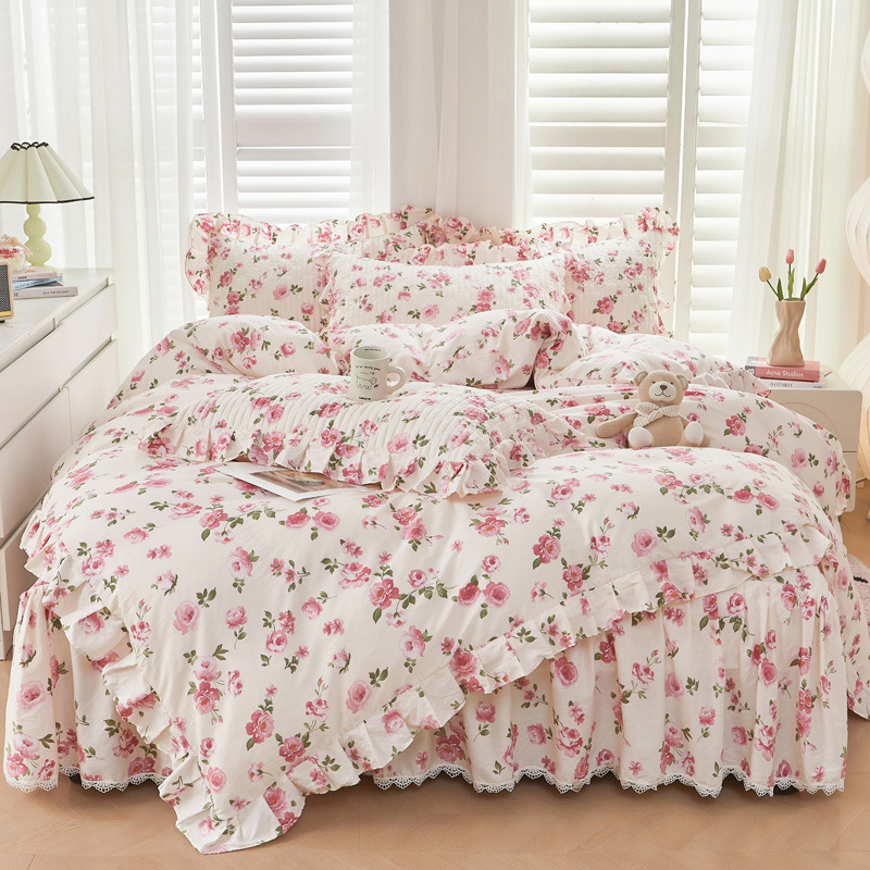 새로운 코튼 레이스 침대 스타일 패딩 코튼 베드 스커트 4 피스 세트 작은 신선한 코튼 편안한 알몸 슬리핑 머신 세탁기