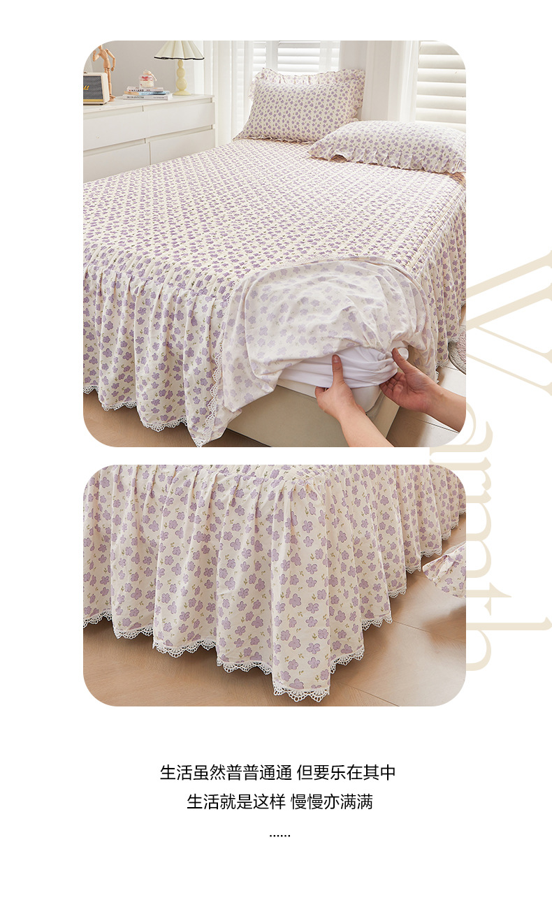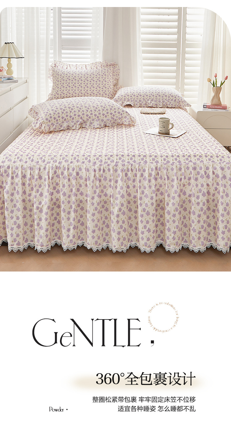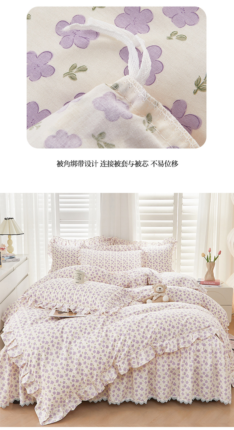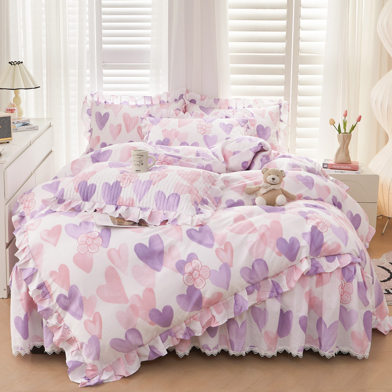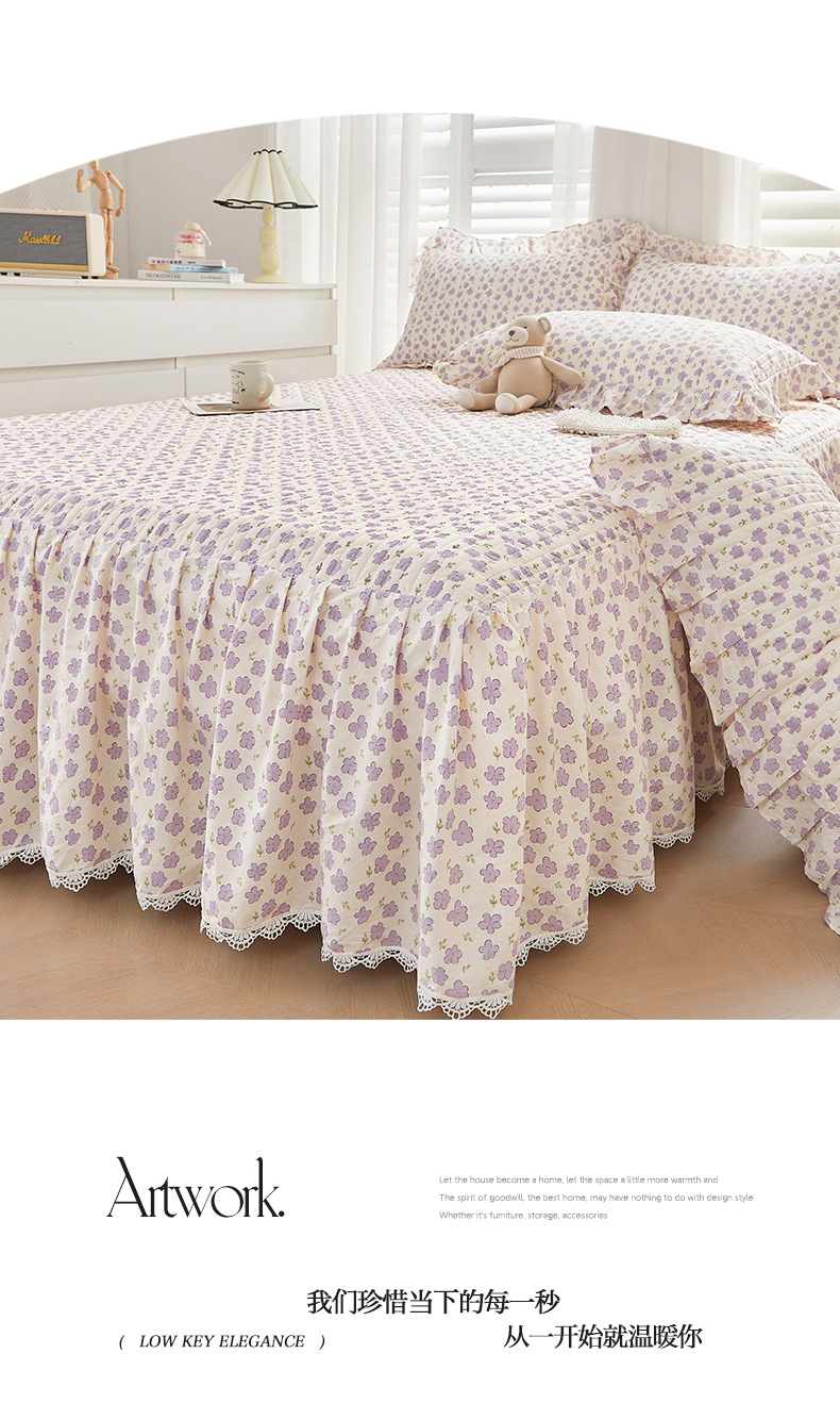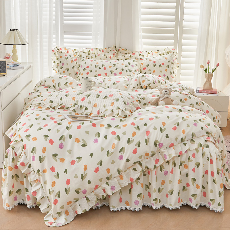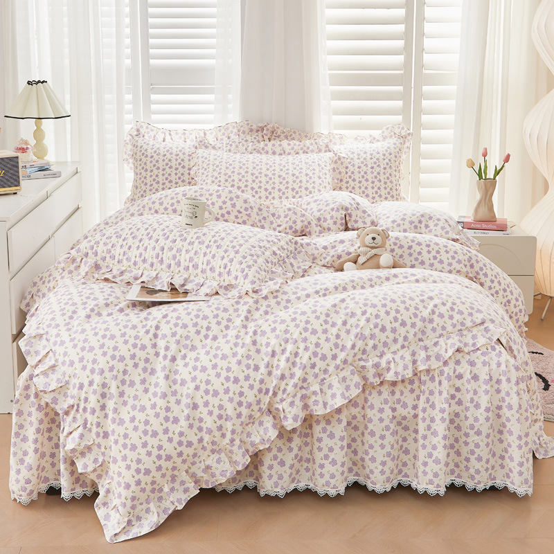 새로운 코튼 레이스 침대 스타일 패딩 코튼 베드 스커트 4 피스 세트 작은 신선한 코튼 편안한 알몸 슬리핑 머신 세탁기