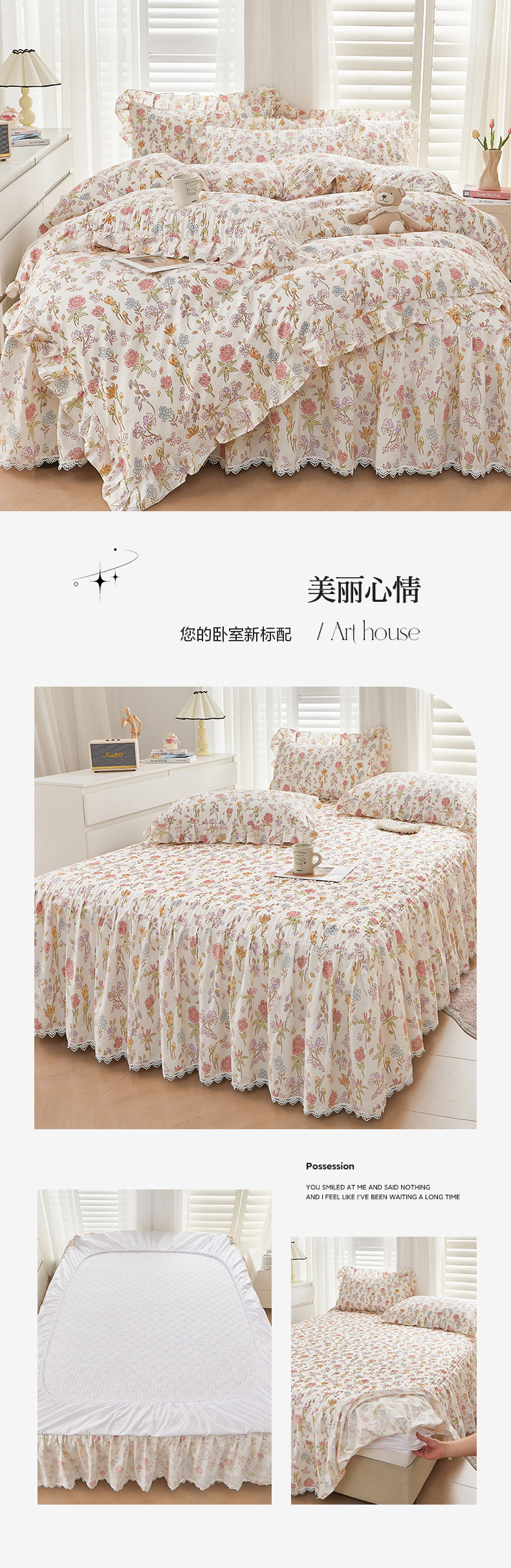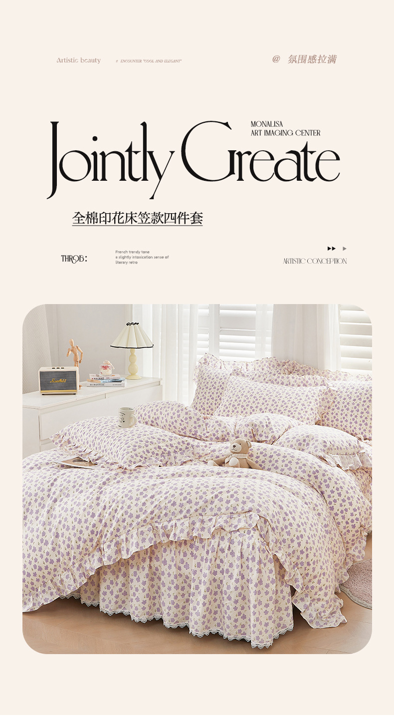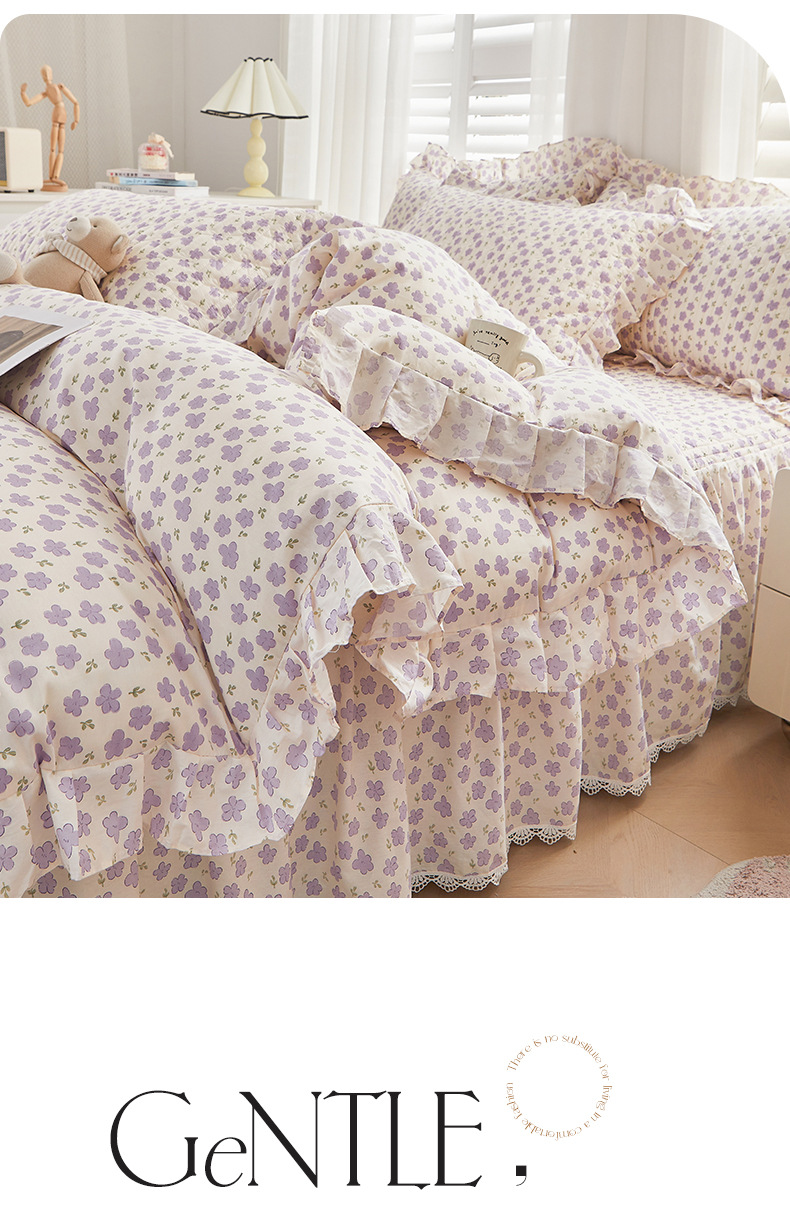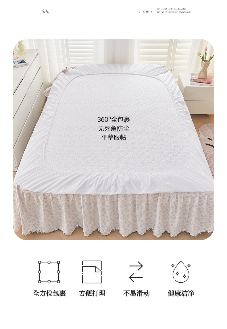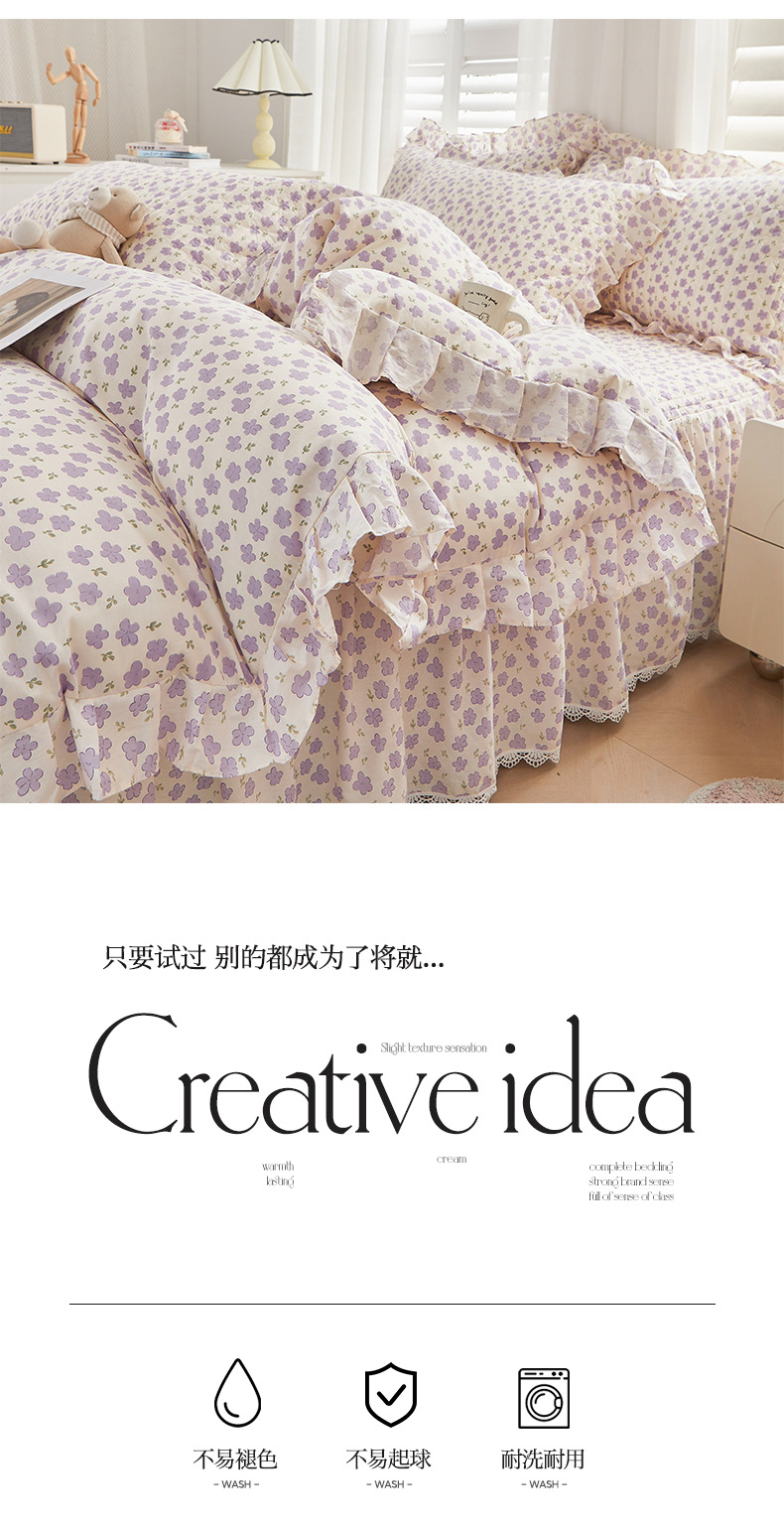 새로운 코튼 레이스 침대 스타일 패딩 코튼 베드 스커트 4 피스 세트 작은 신선한 코튼 편안한 알몸 슬리핑 머신 세탁기