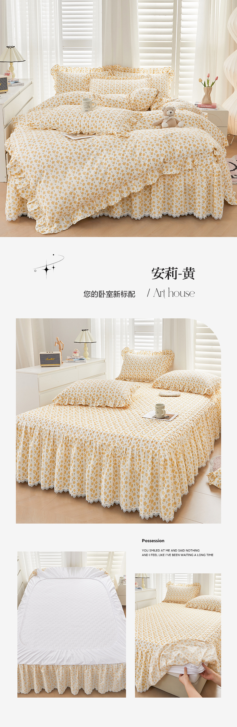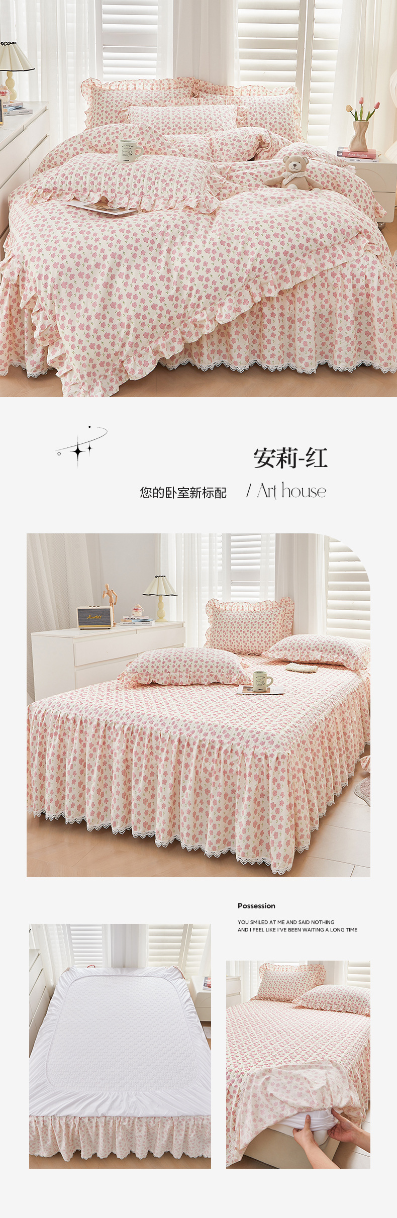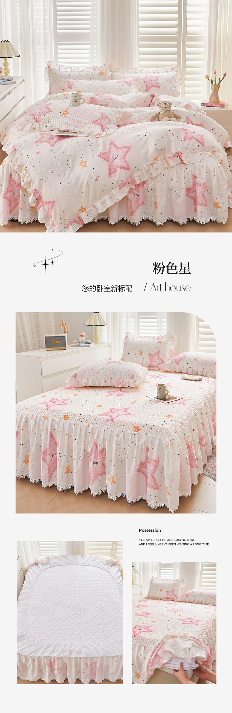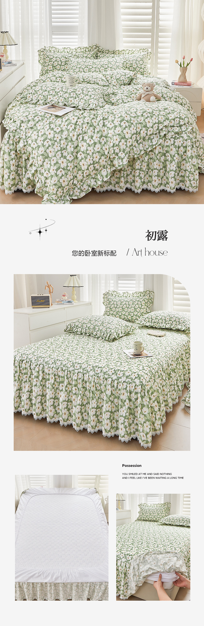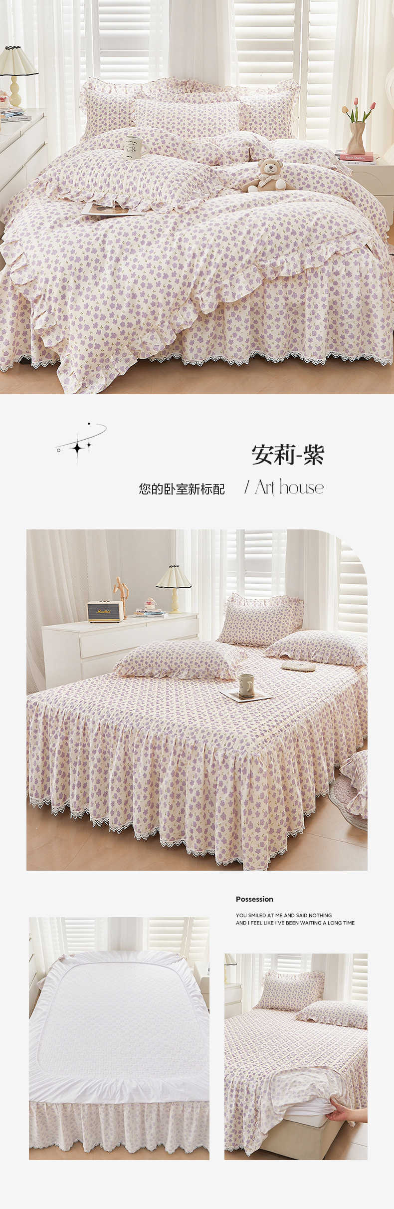 새로운 코튼 레이스 침대 스타일 패딩 코튼 베드 스커트 4 피스 세트 작은 신선한 코튼 편안한 알몸 슬리핑 머신 세탁기