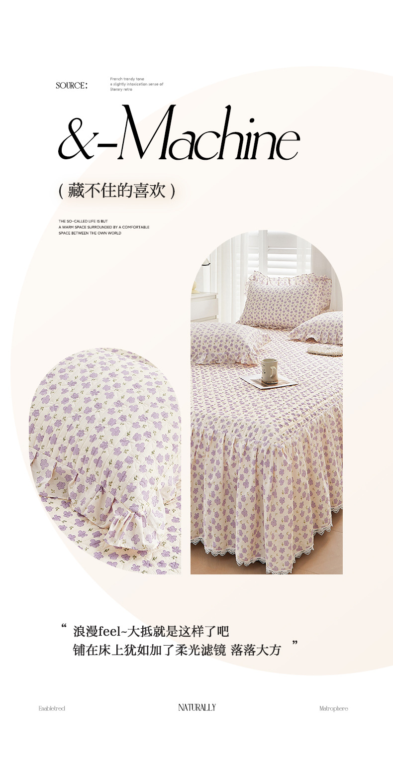새로운 코튼 레이스 침대 스타일 패딩 코튼 베드 스커트 4 피스 세트 작은 신선한 코튼 편안한 알몸 슬리핑 머신 세탁기스토어 가기