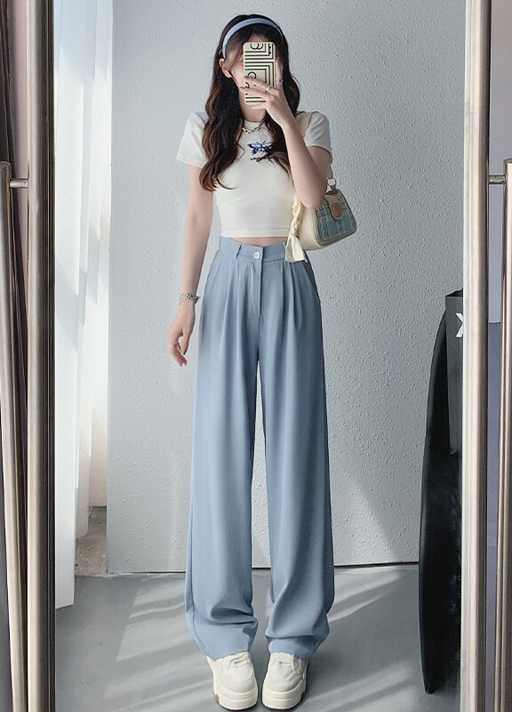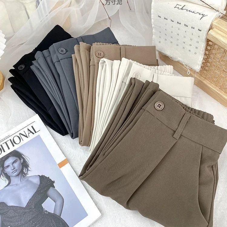 국경 간 아마존 제조업체는 이제 세트 바지 여성의 2024 하이 허리 캐주얼 스트레이트 팬츠 느슨한 드레이프 작은 바지 여성을 판매합니다.스토어 가기