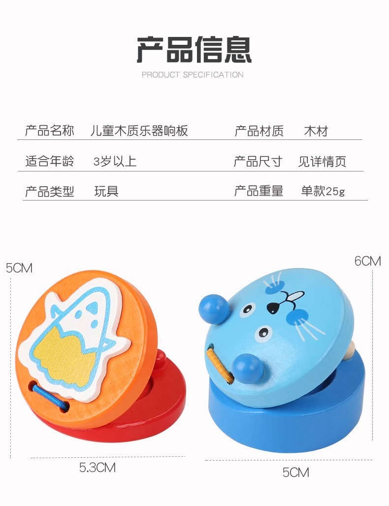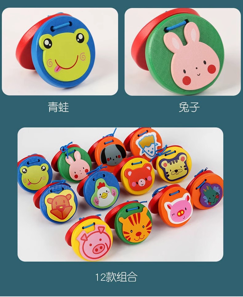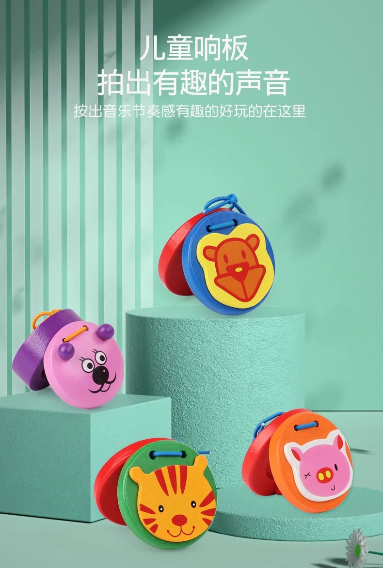 나무 캐스터네츠 동물 Orff 조기 교육 음악 장난감 나무 어린이 타악기 Da Da 전문 라운드 댄스 보드스토어 가기