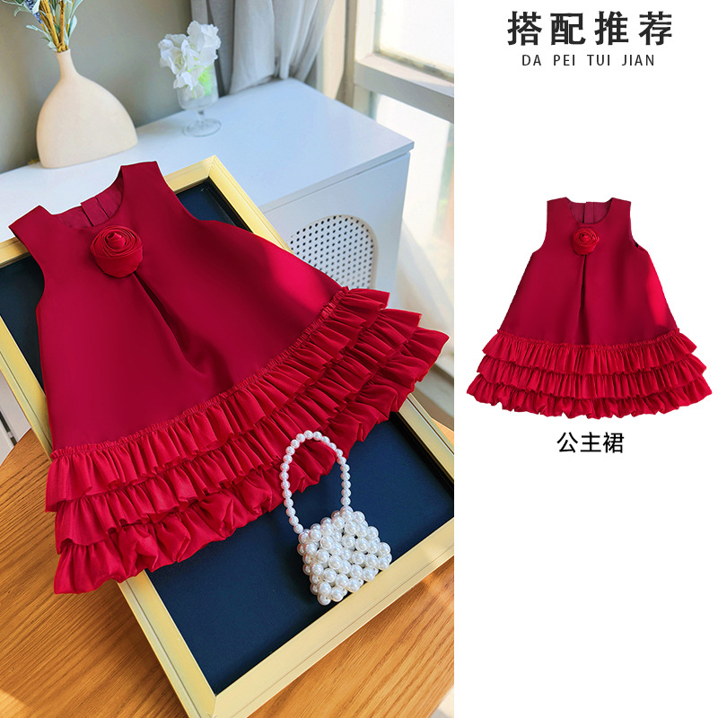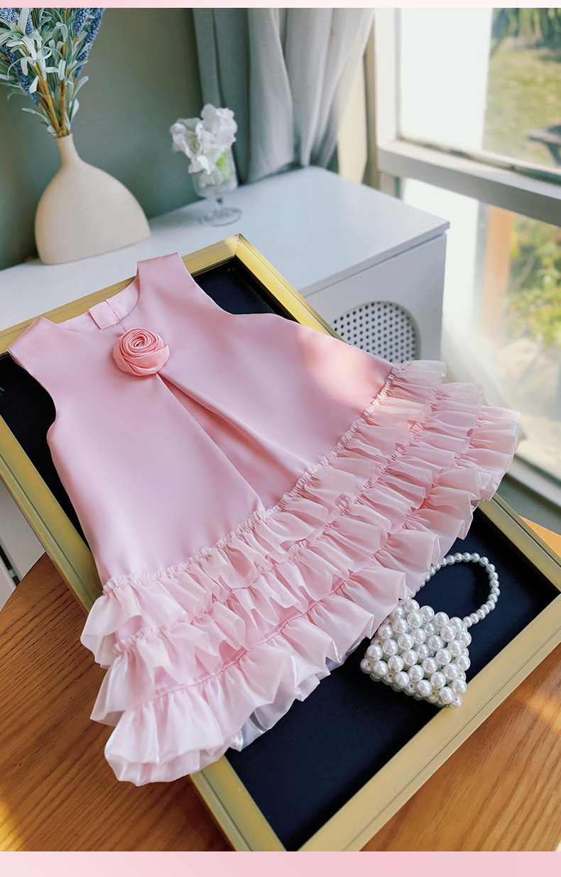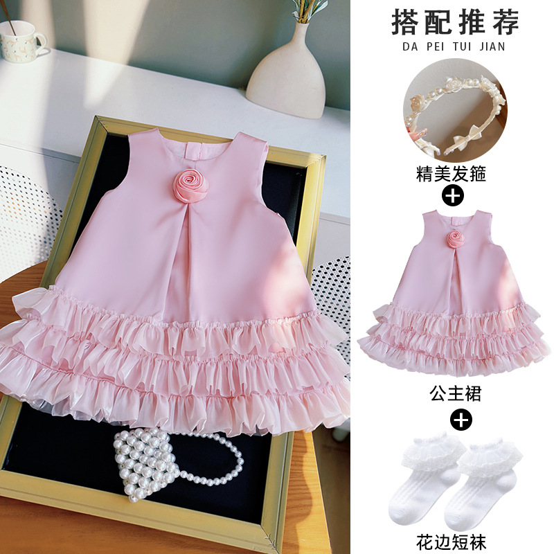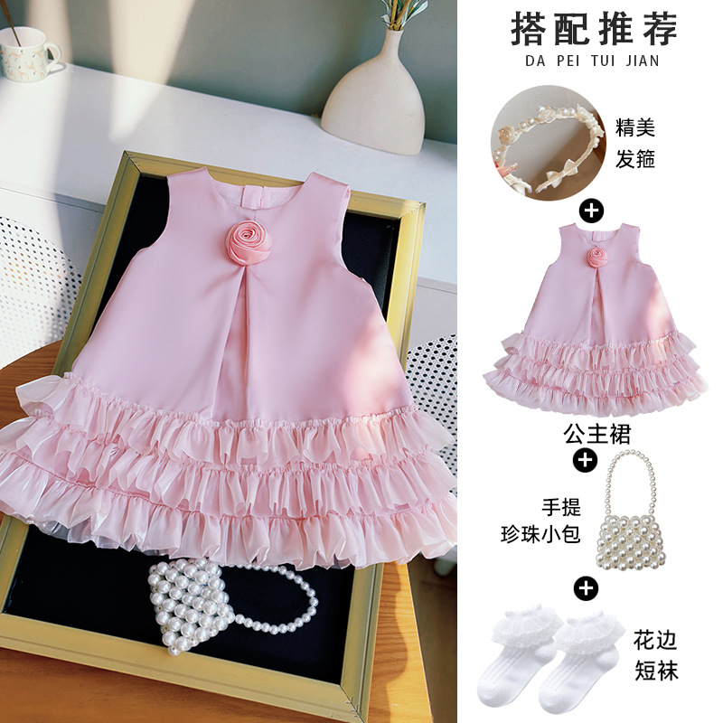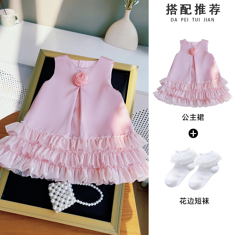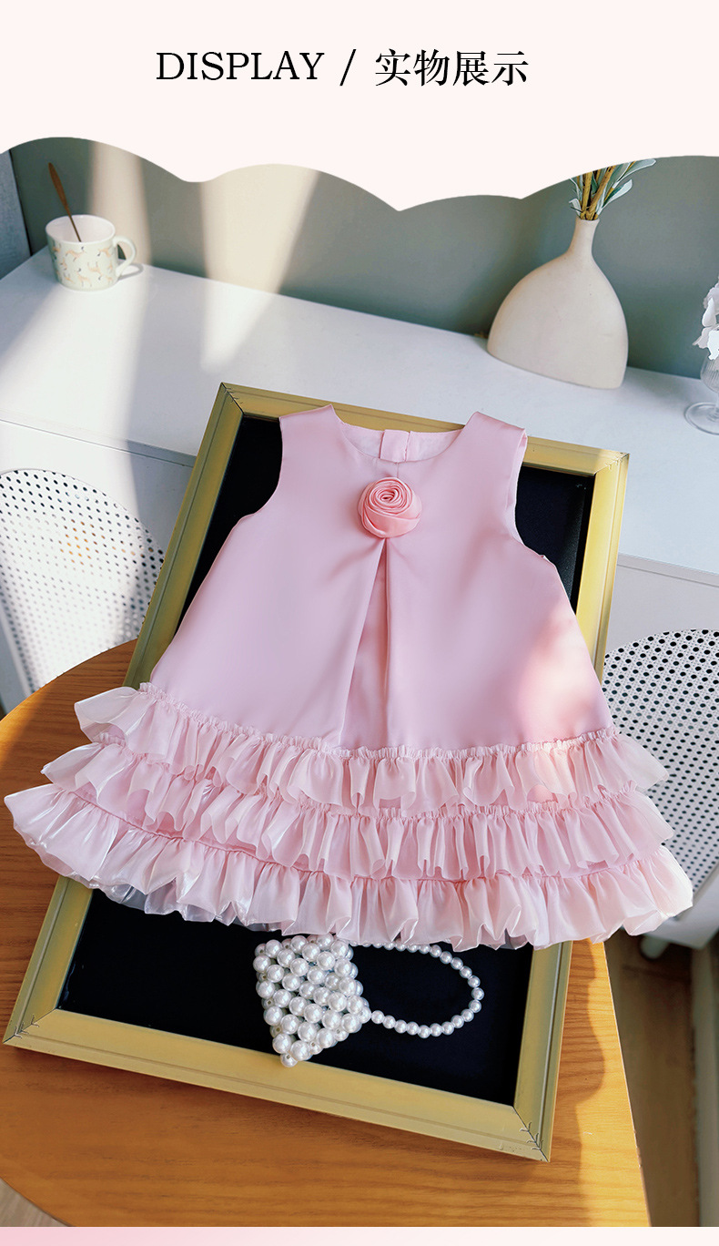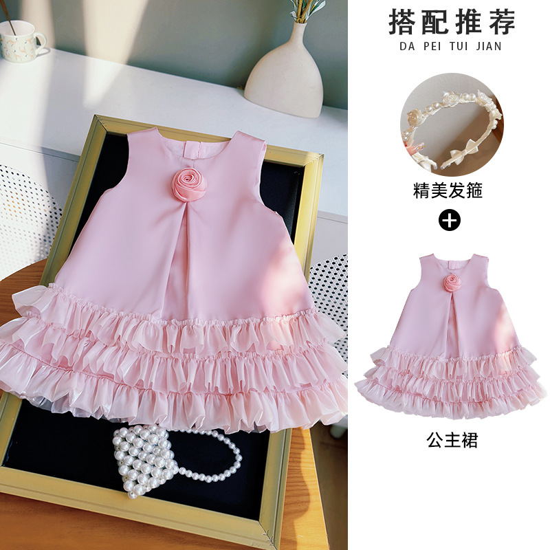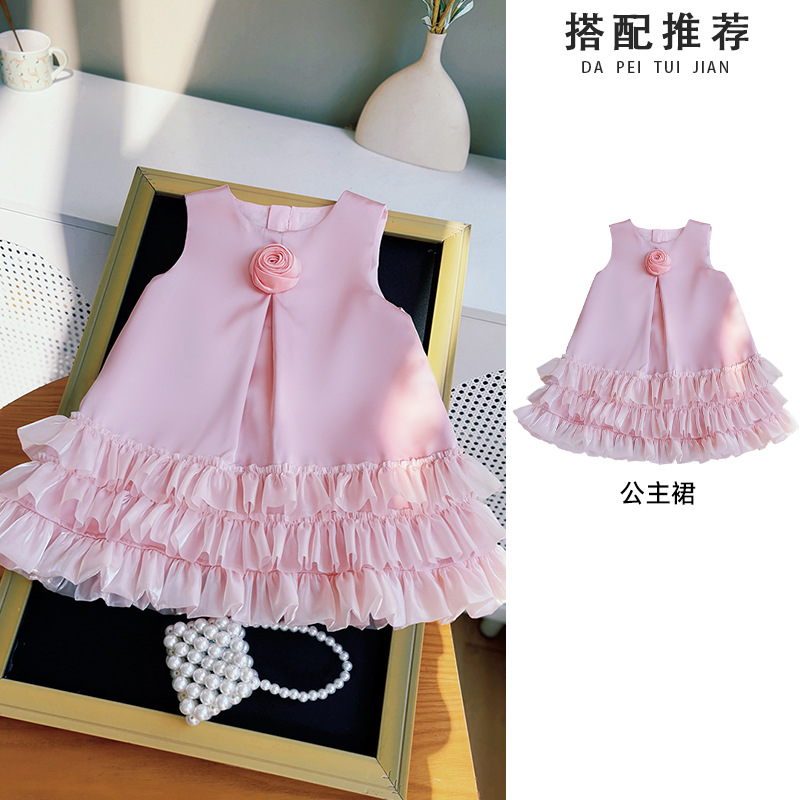 여자 라이트 럭셔리 입체 장미 드레스 여름 핑크 달콤한 조끼 푹신한 공주 드레스 한 살짜리 아기 소녀 드레스스토어 가기
