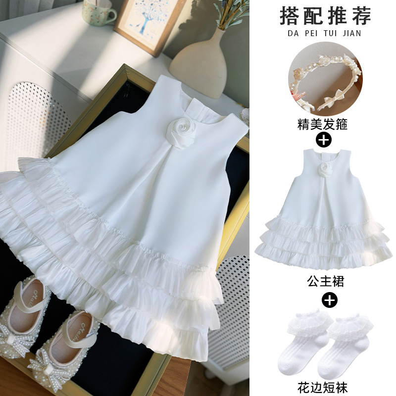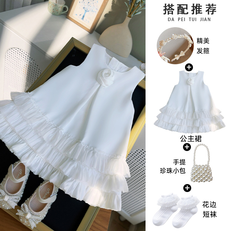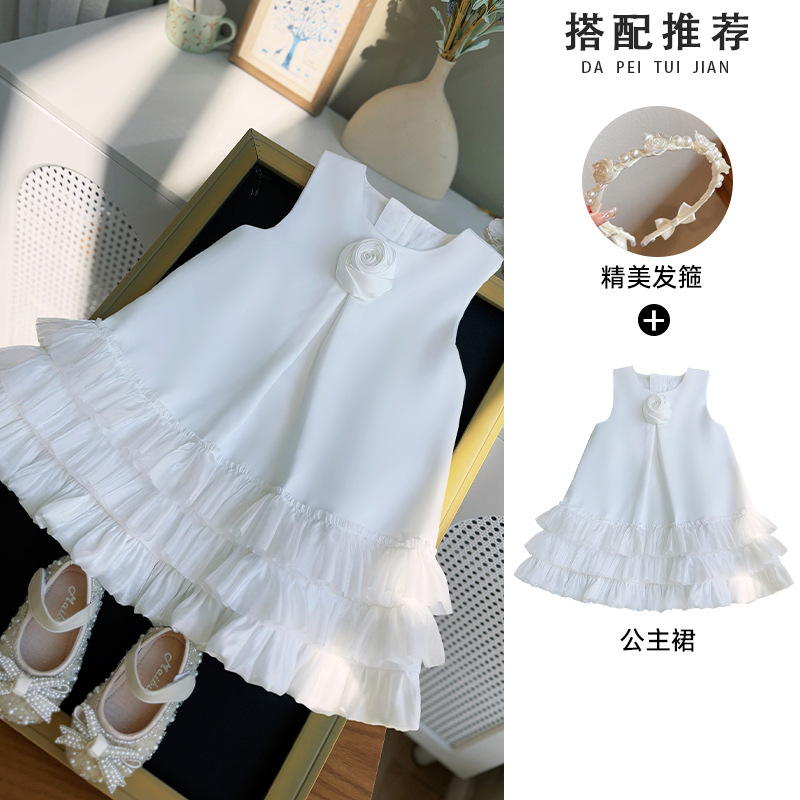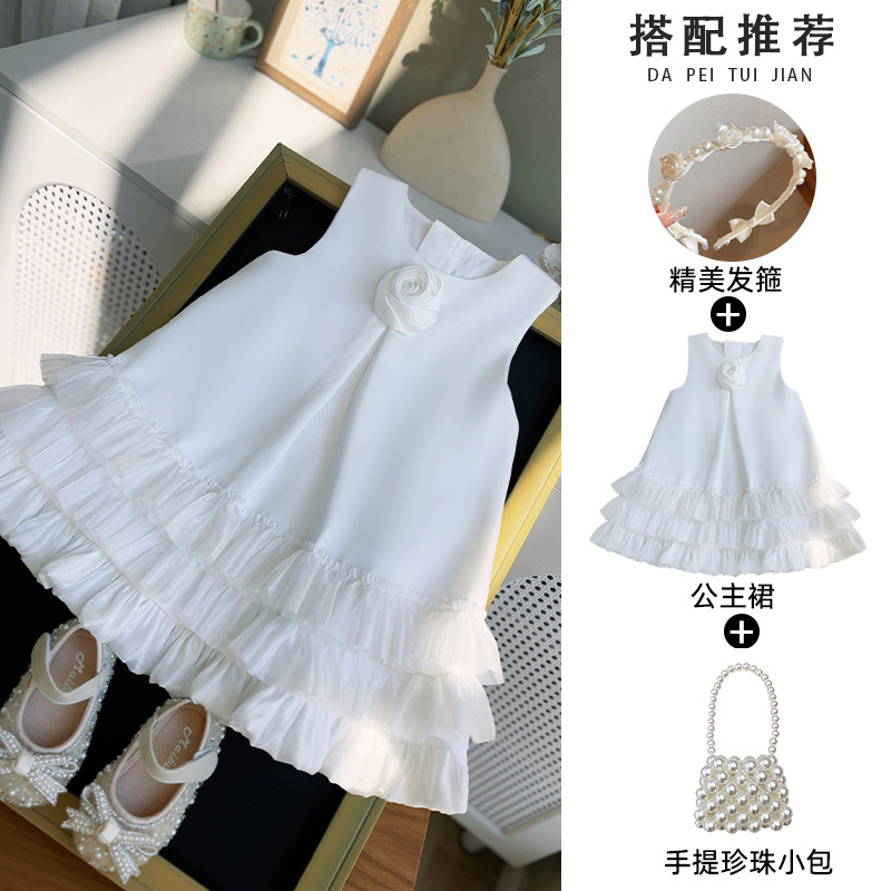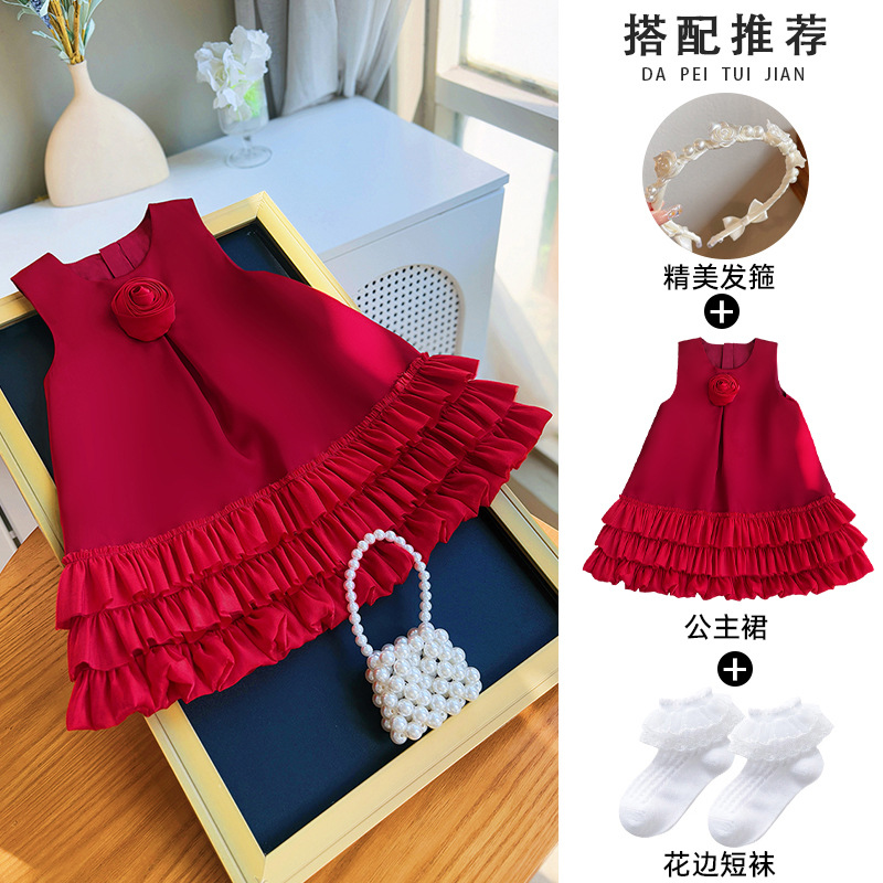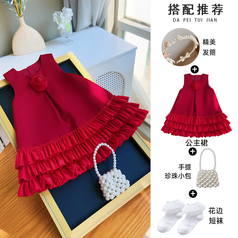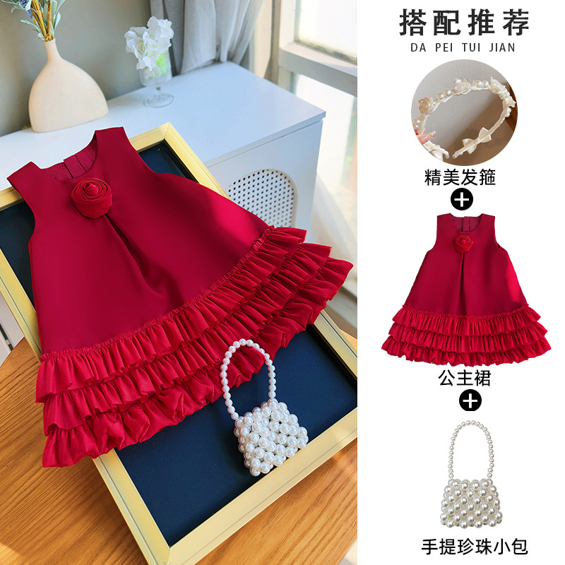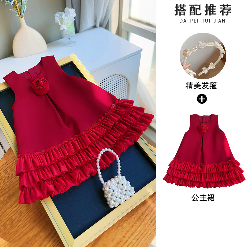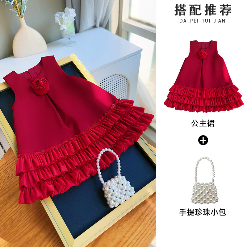여자 라이트 럭셔리 입체 장미 드레스 여름 핑크 달콤한 조끼 푹신한 공주 드레스 한 살짜리 아기 소녀 드레스스토어 가기