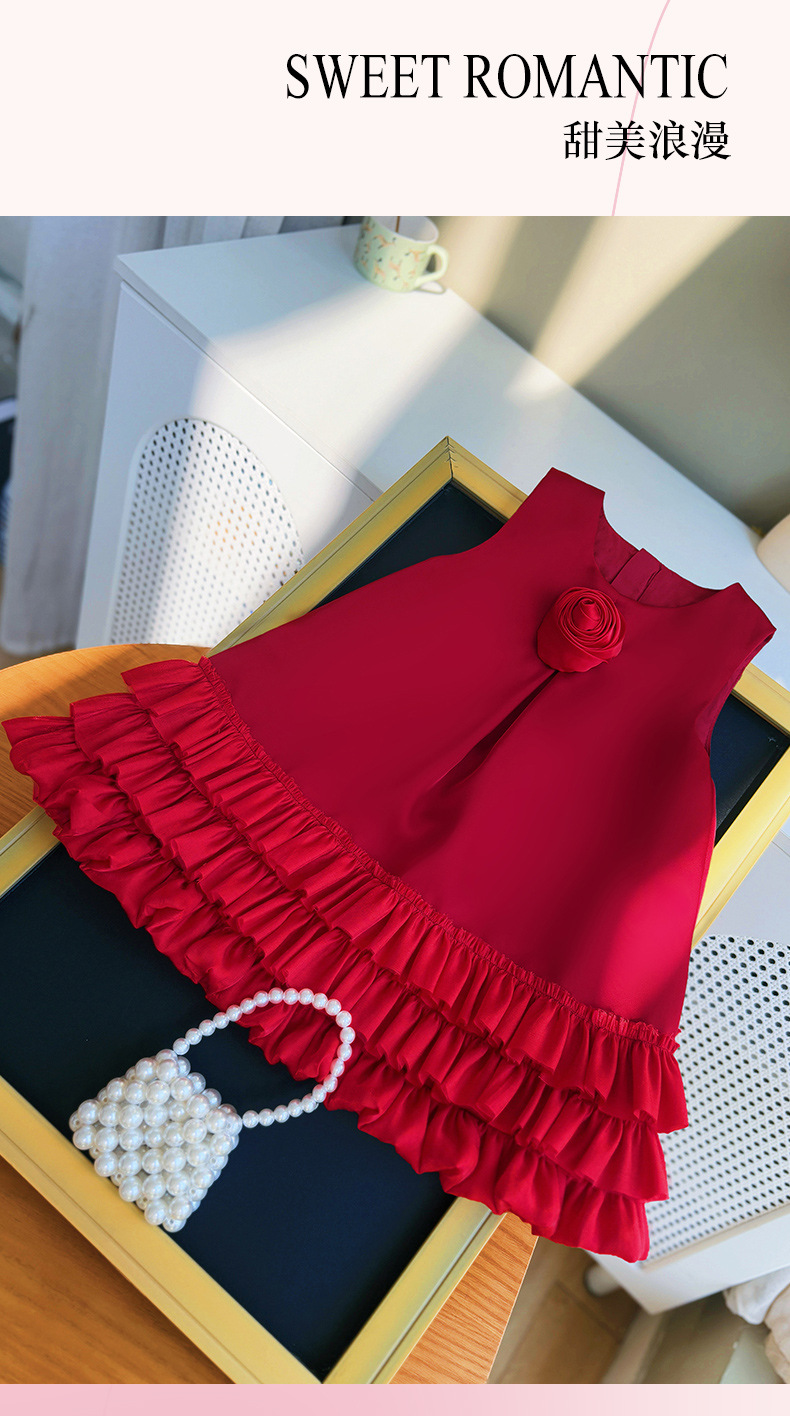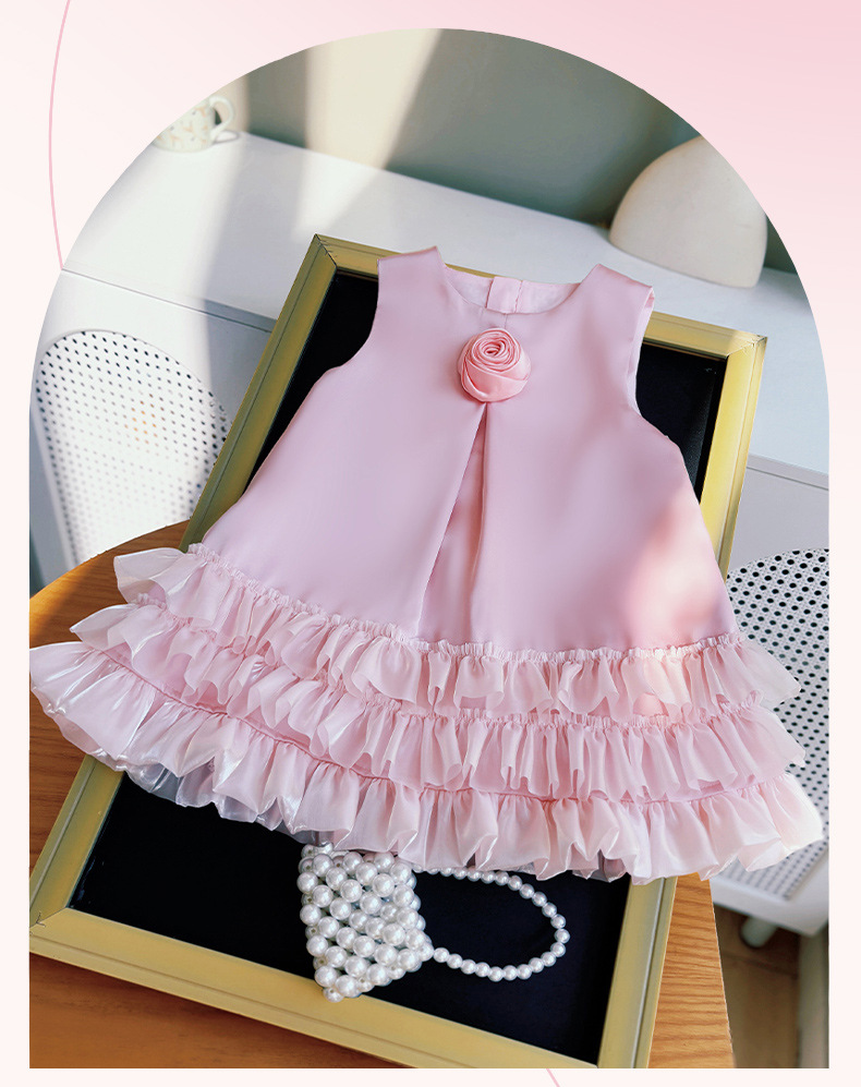 여자 라이트 럭셔리 입체 장미 드레스 여름 핑크 달콤한 조끼 푹신한 공주 드레스 한 살짜리 아기 소녀 드레스