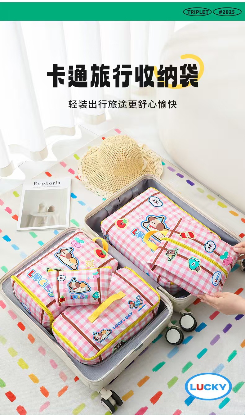 • 카툰 여행용 수납가방 [핑크 라지]]