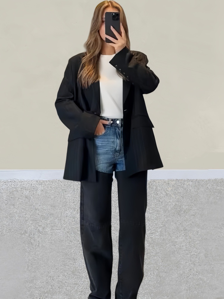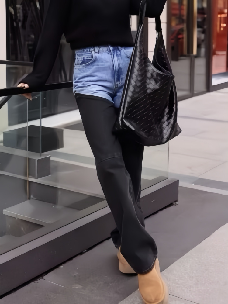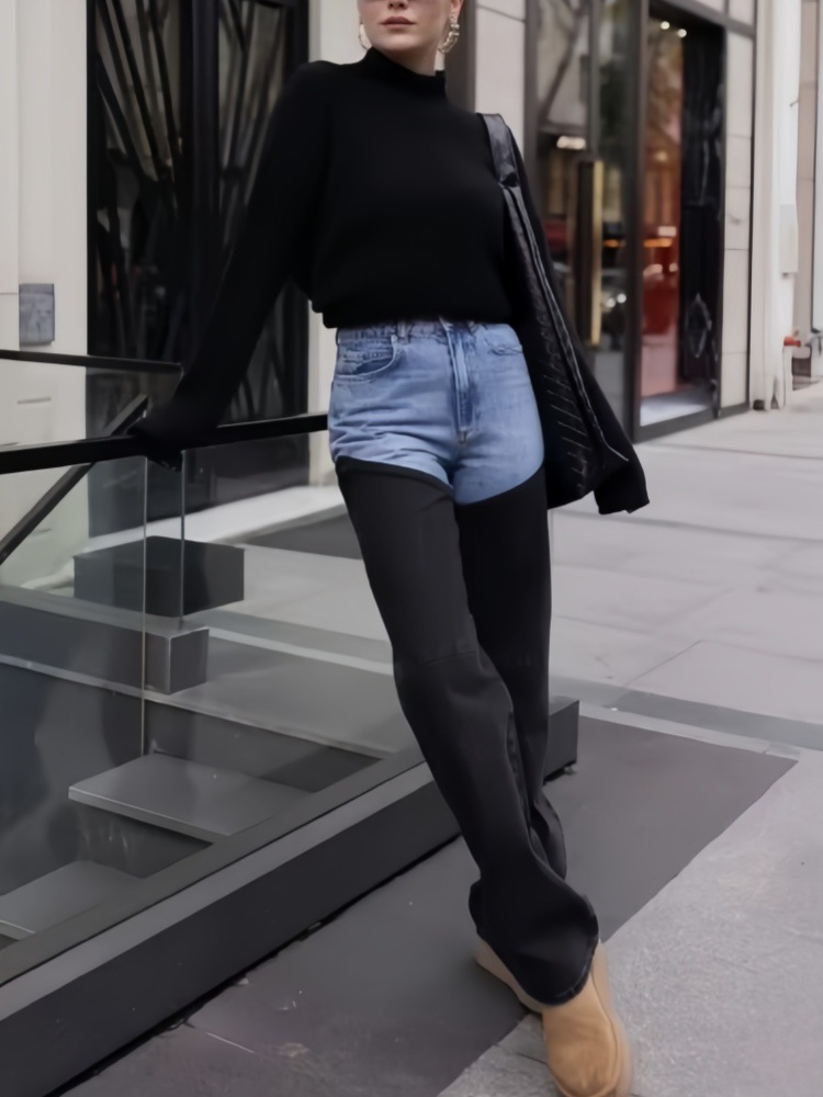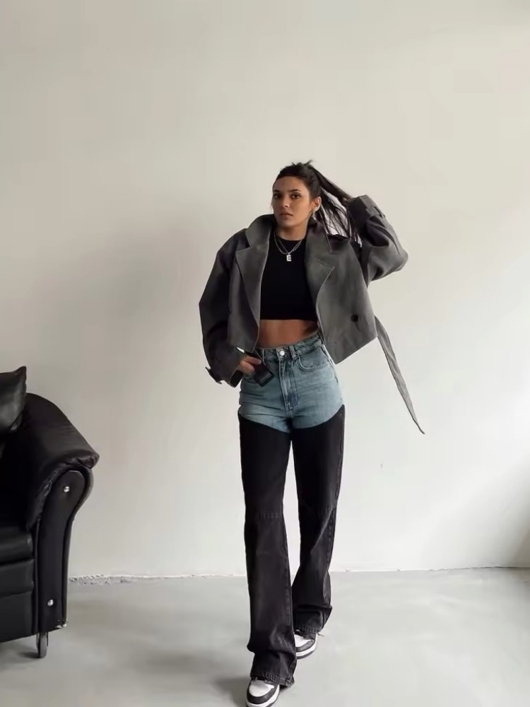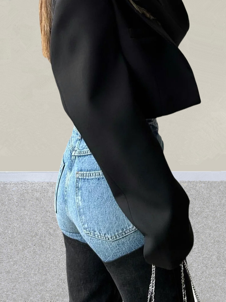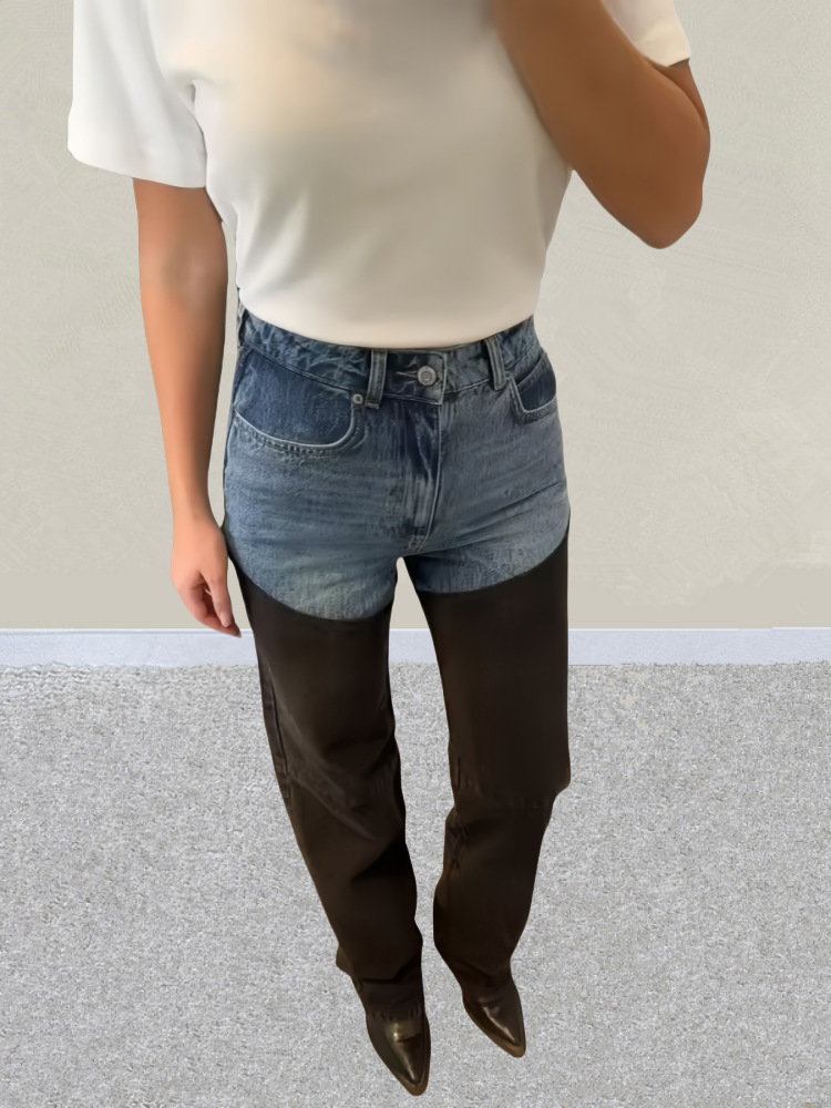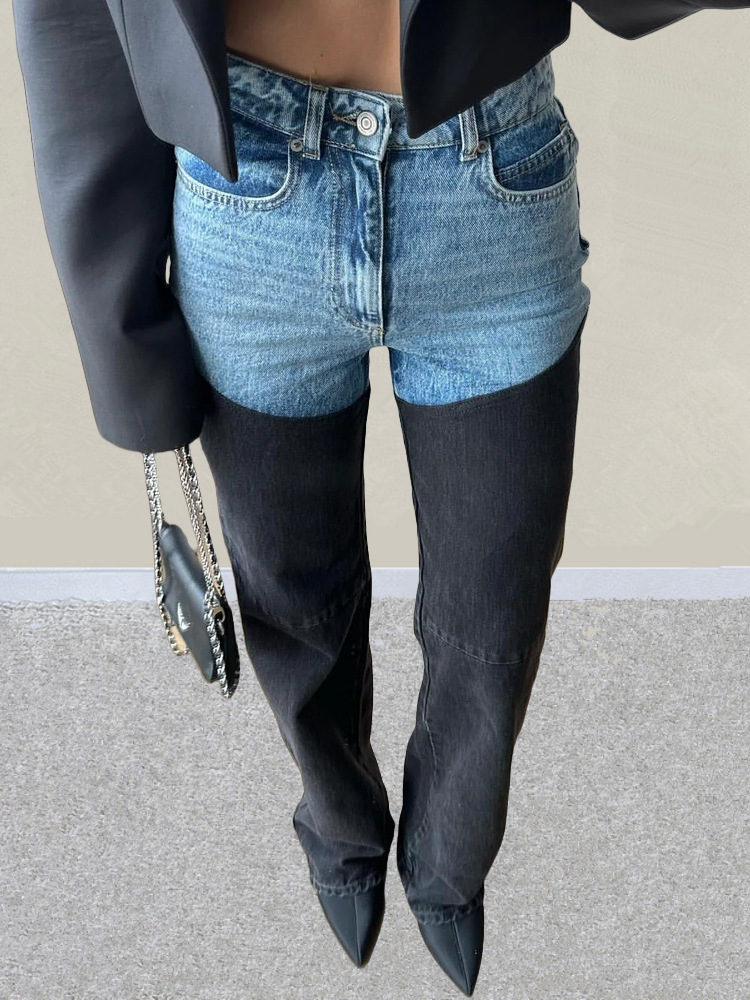 아메리칸 스타일 Y2K 블루와 블랙 대비 컬러 스플라이싱 스트레치 슬림 여성 청바지 캐주얼 바지 여성 청바지스토어 가기