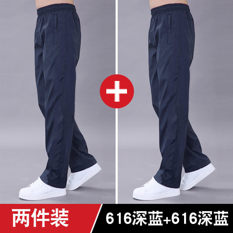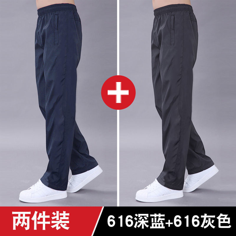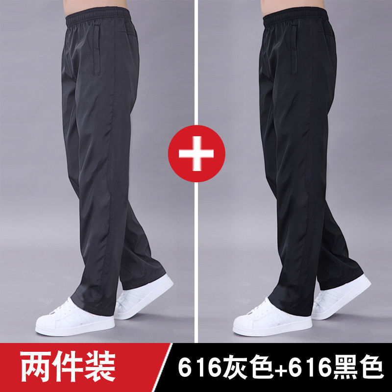 남성용 여름 스포츠 바지, 루즈하고 내마모성이 뛰어나고 얇고 통기성이 뛰어나며 속건성이 뛰어난 남성용 폴리에스터 러닝 바지, 남성용 대형 스트레이트 캐주얼 바지