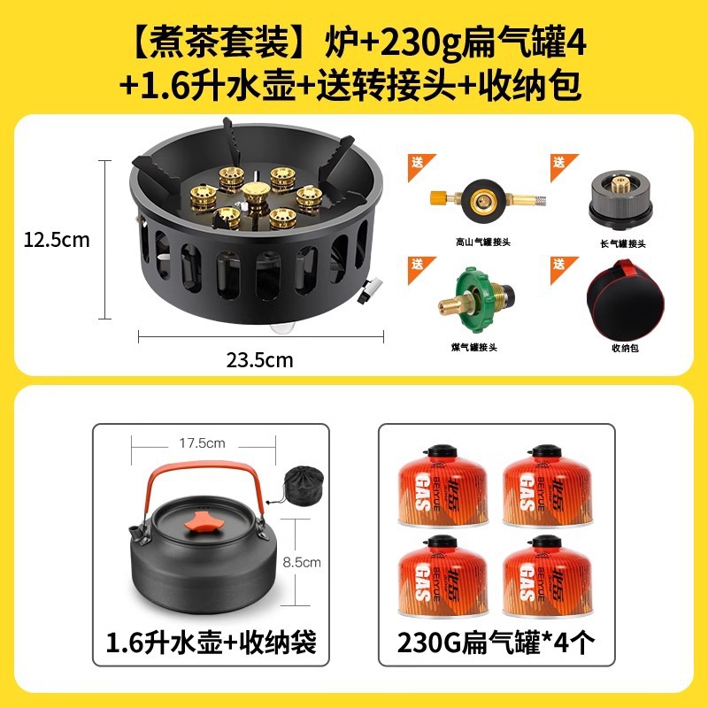 • [차 시음 세트] 칠성 난로 + 230g 알파인 플랫 가스 탱크 * 4 + 1.6리터 주전자 + 어댑터 + 보관 가방