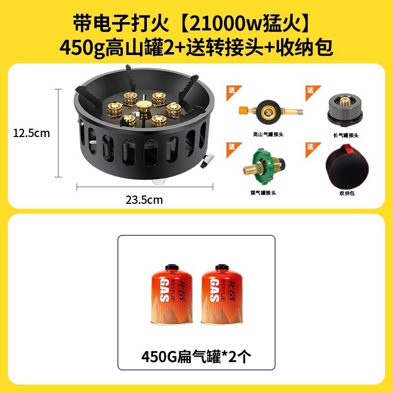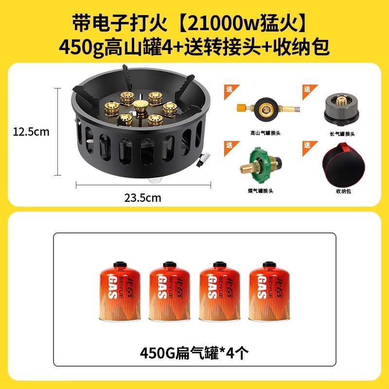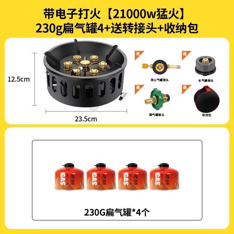 • 전자 점화 [21KW 맹렬한 불꽃] 450G 알파인 가스 탱크 * 4 + 무료 어댑터 + 보관 가방