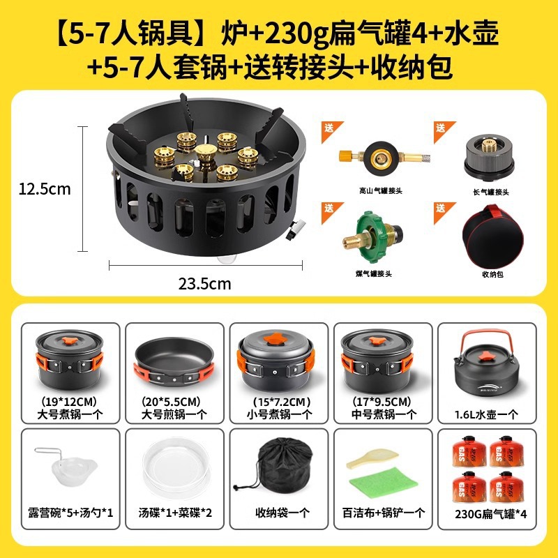 • [3-4인 패키지] 세븐스타 스토브 + 230g 알파인 플랫 가스 탱크*4 + 3-4인용 냄비 세트 + 어댑터 + 보관 가방