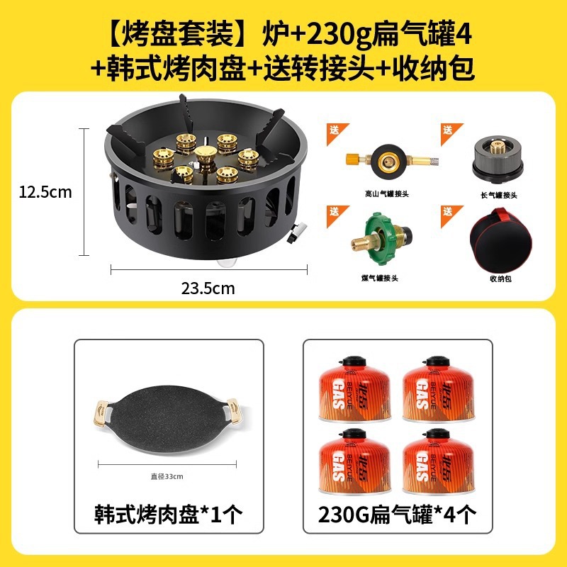 • [BBQ 세트] 세븐스타 스토브 + 230g 알파인 플랫 가스 탱크*4 + 한식 바베큐 플레이트 + 어댑터 + 보관 가방