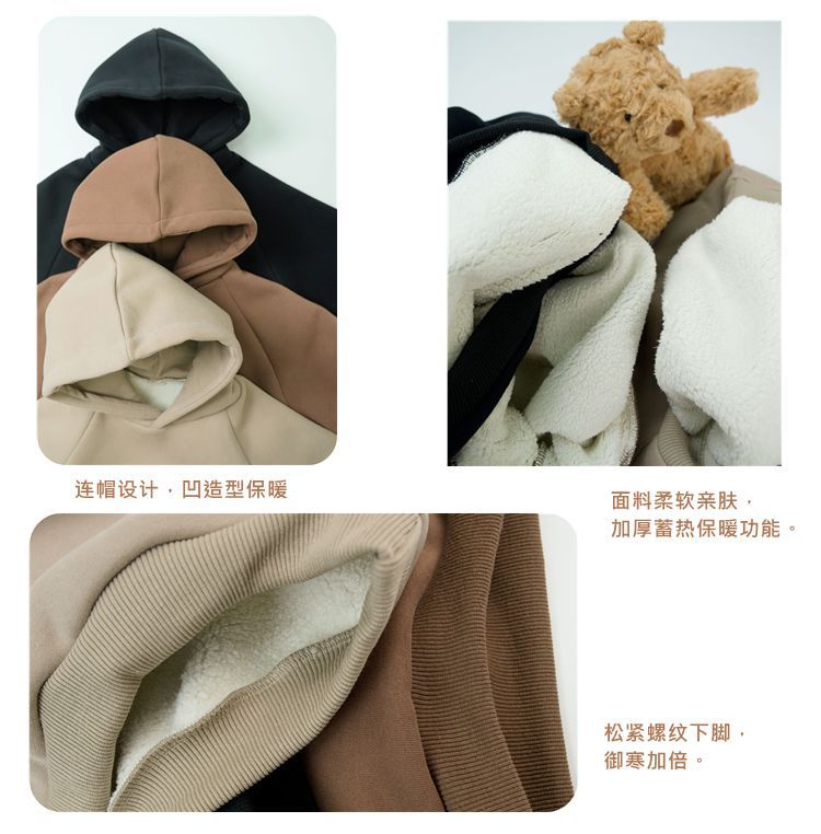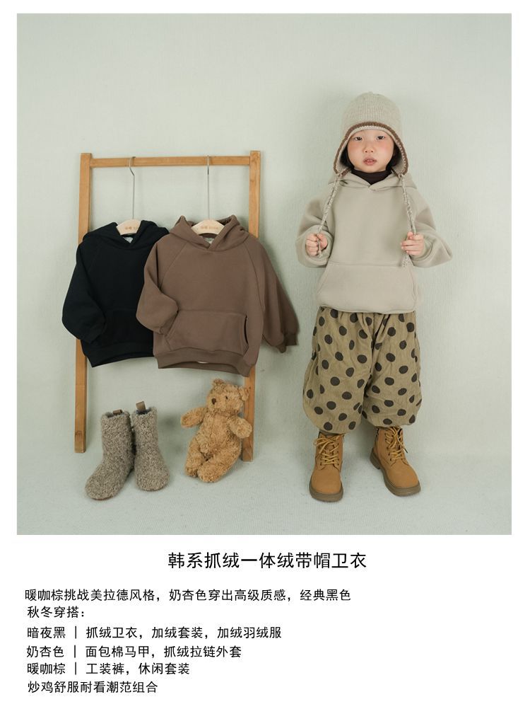 어린이 원피스 벨벳 스웨터 가을과 겨울 새 기모 두꺼운 소년 소녀 한국식 후드 풀오버 캐주얼 스웨터 트렌디스토어 가기