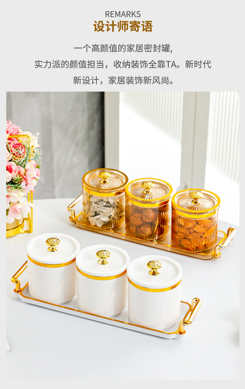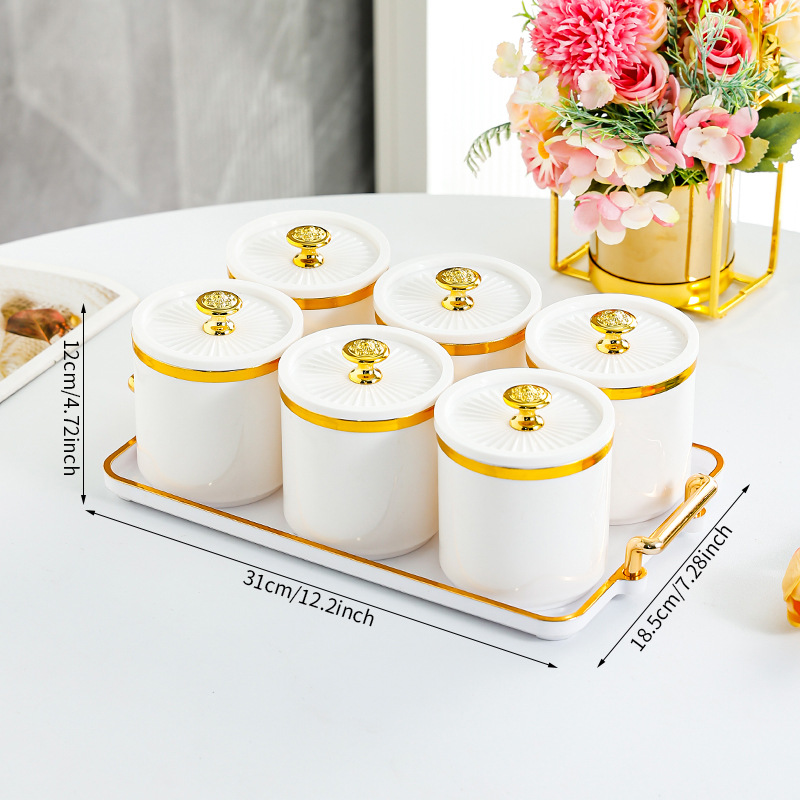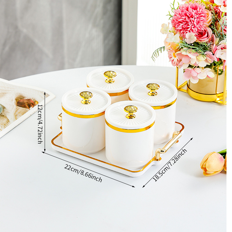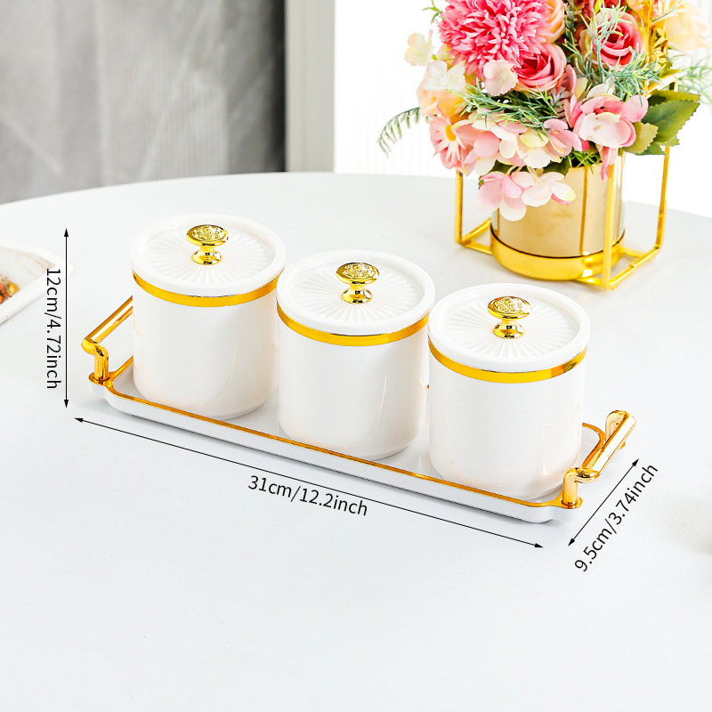 • 도자기 흰색 원형 항아리 3격자 T 골드 손잡이