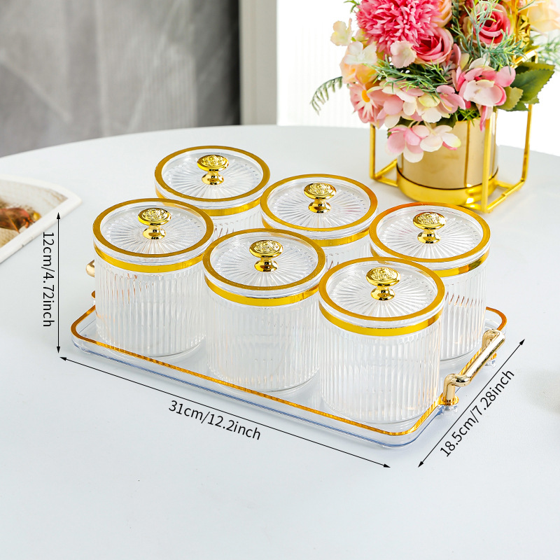 • 투명 원형 캔 6그리드 플레이트-T 골드 손잡이