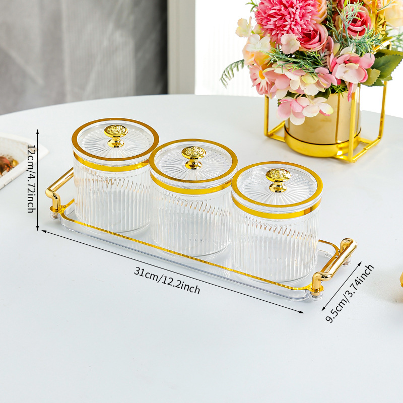 • 투명 원형 캔 3격 트레이-T 골드 손잡이