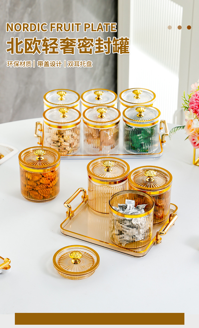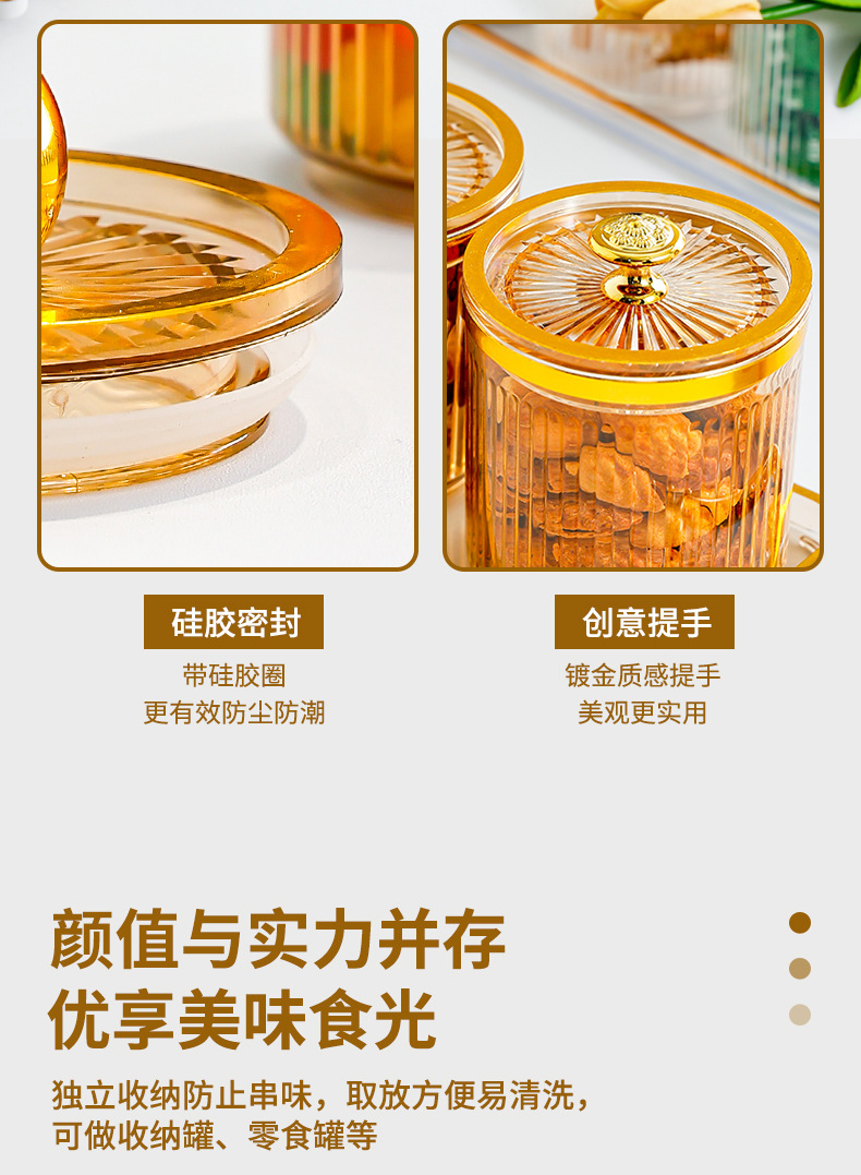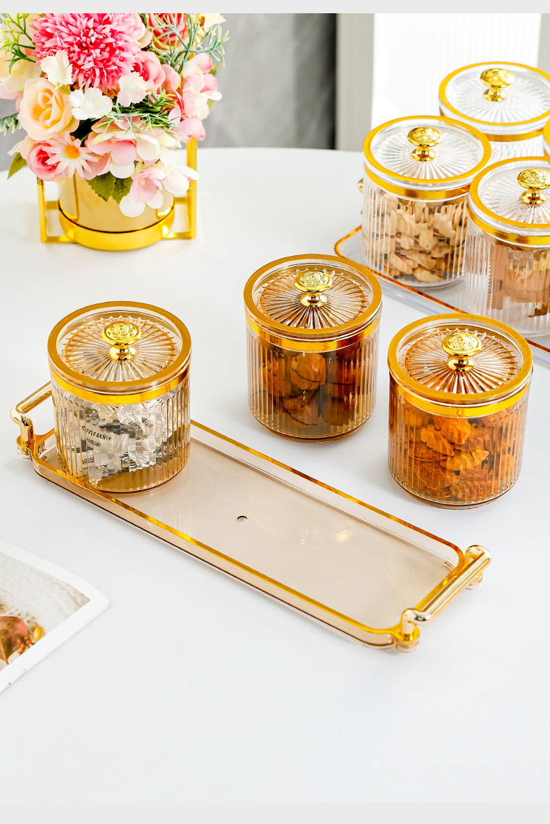 • 호박색 원형 캔 3그리드 플레이트-T 골드 손잡이