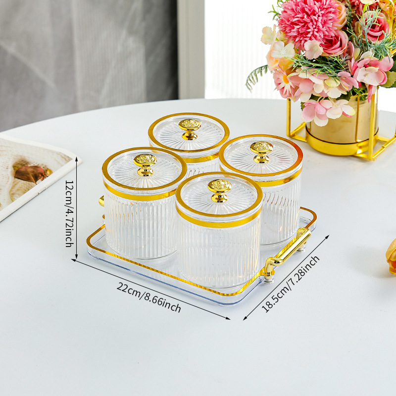 • 투명 원형 캔 4그리드 트레이-T 골드 손잡이