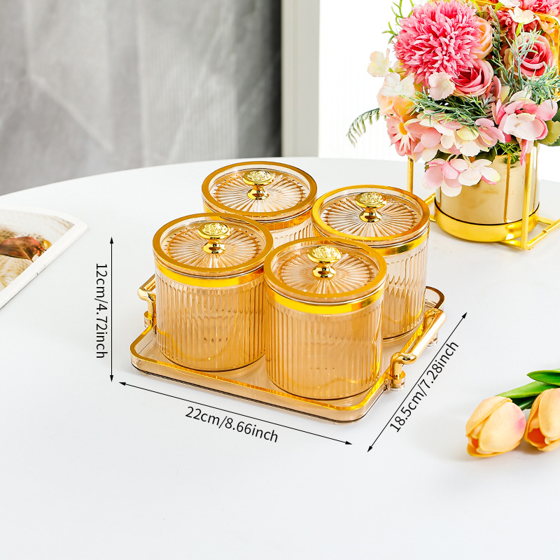 • 호박색 원형 캔 4그리드 플레이트-T 골드 손잡이