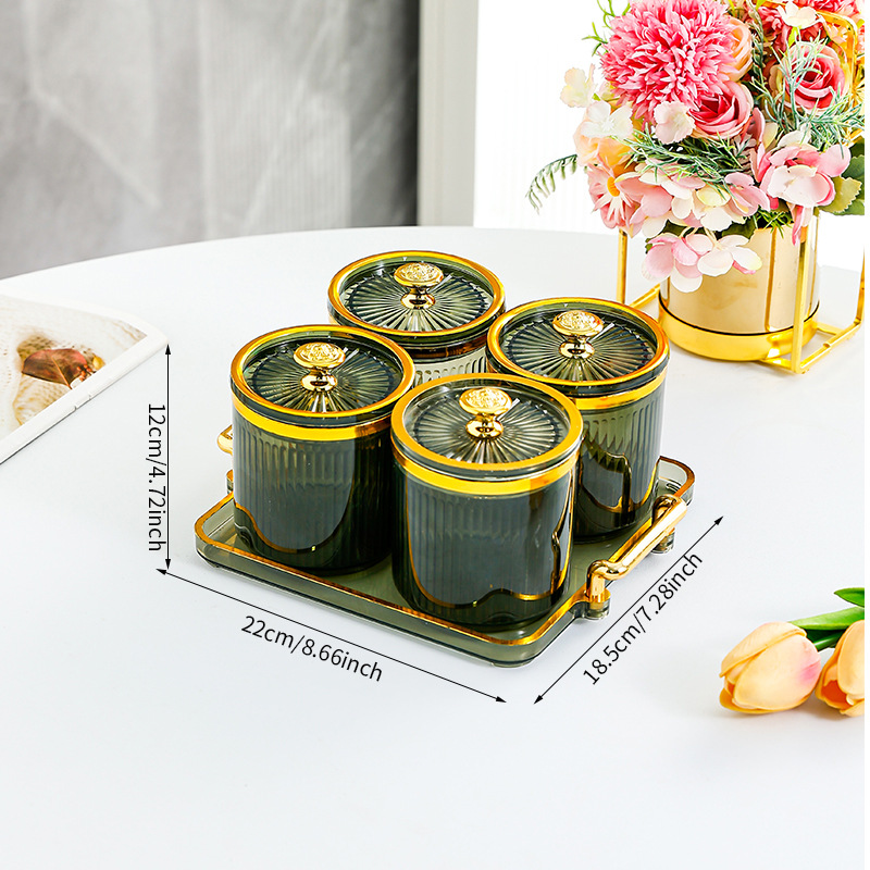 • 과일 녹색 원형 캔 4 그리드 플레이트-T 골드 손잡이
