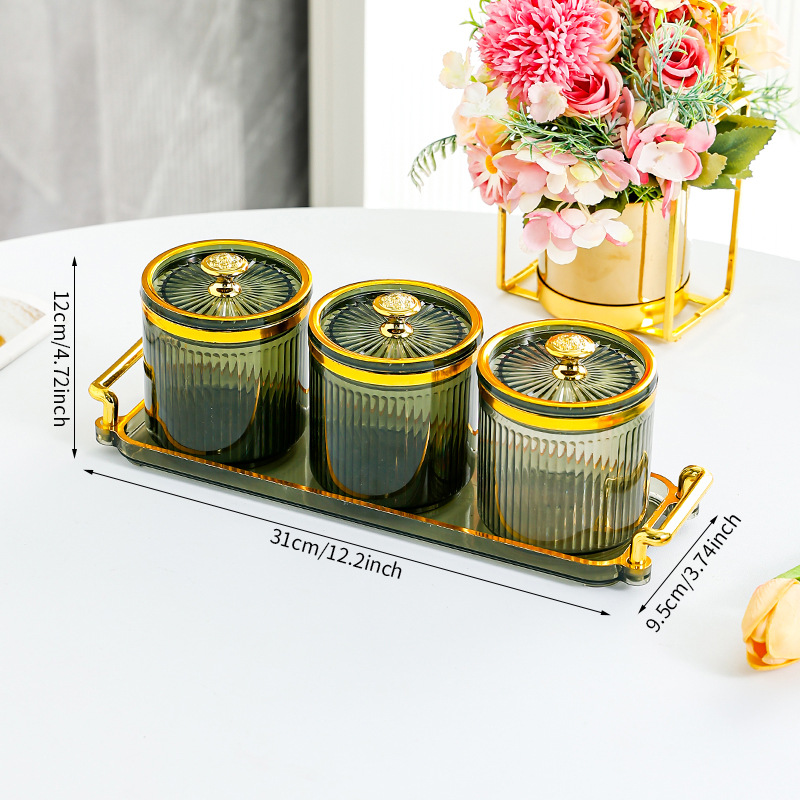 • 과일 녹색 원형 캔 3 그리드 플레이트-T 골드 손잡이